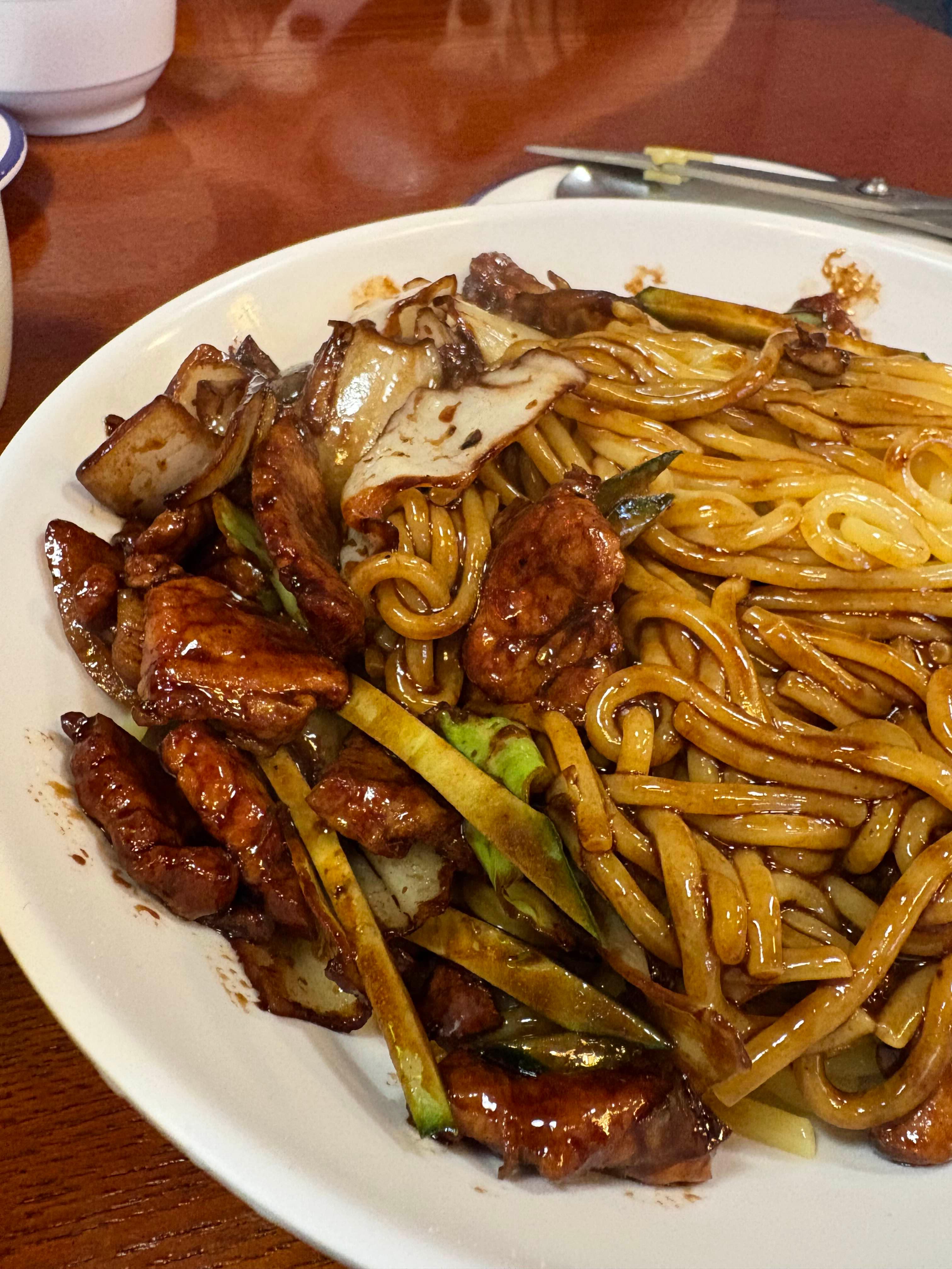 돌판이 아닌 일반 짜장면이었는데, 면이 아주 쫄깃하고 양도 많아서 먹는 내내 만족감이 꽤 컸어요. 곱배기 주문했지만 느끼함 없이 끝까지 맛있게 먹을 수 있었고, 짜장 소스는 단맛보다는 고소하고 진한 풍미가 더 느껴졌어요. 특히 채소와 고기가 큼직하게 썰려 있어 식감이 좋았어요.