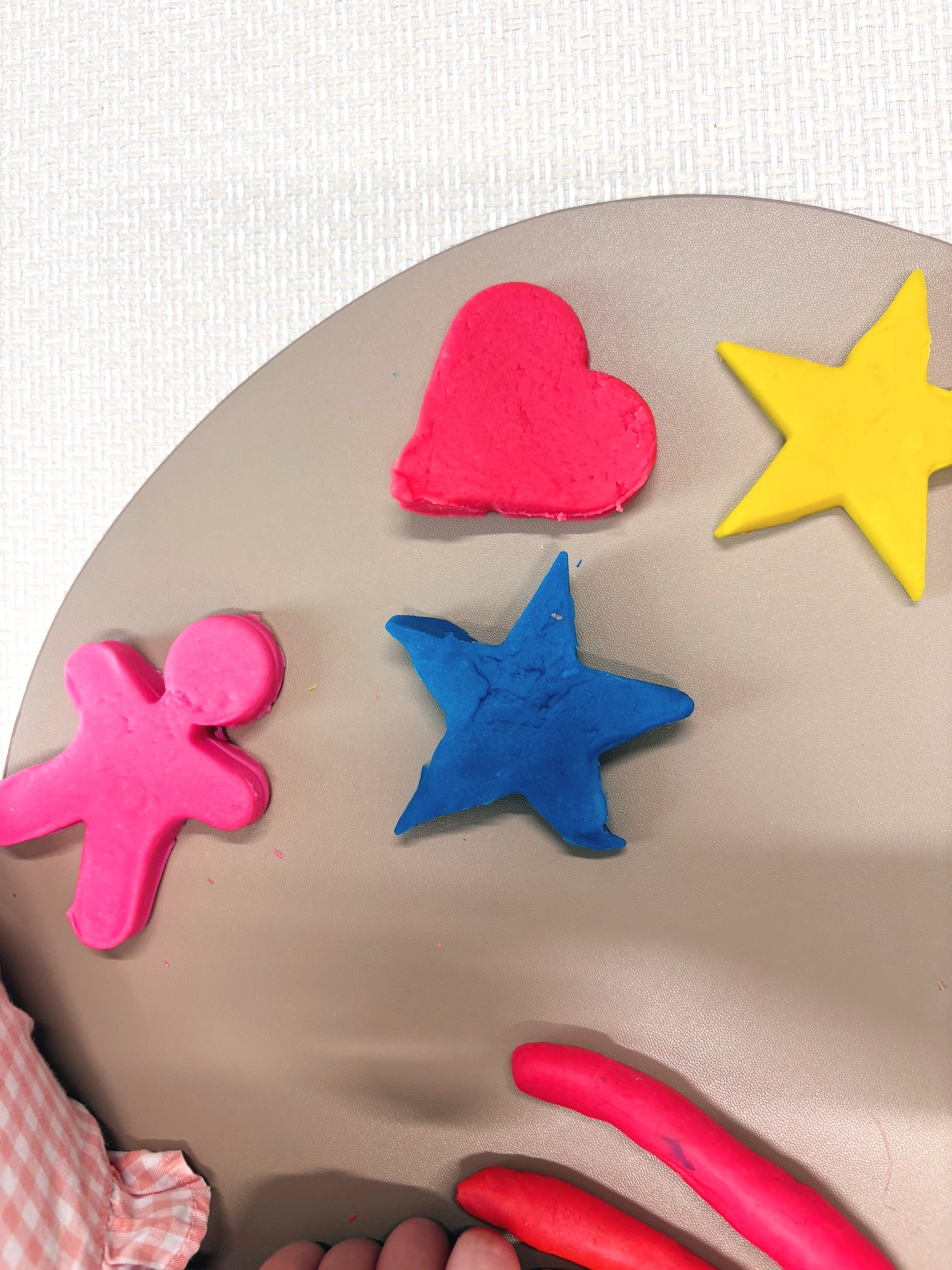 아이랑 하나씩 눌러보면서 “이건 누구 쿠키일까?” 상상놀이도 해보고, 모양틀로 만든 작품 이름 붙이기 놀이도 했어요!