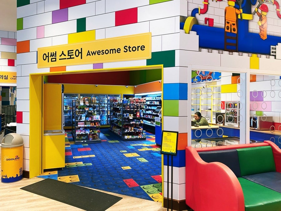 이곳도 모두 같은 컨셉의 랩핑과 레고로 만든 장난감들이 가득했어요.