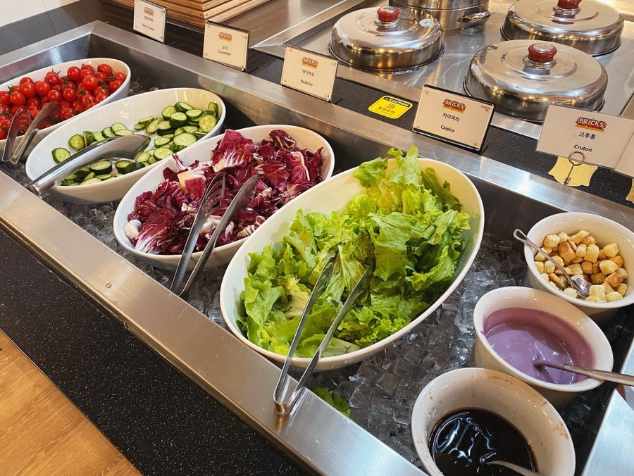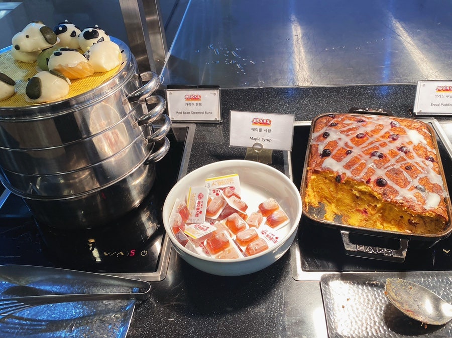 호텔 예약 시 조식 포함 옵션이어서 늦잠을 자고 9시쯤 브릭스 레스토랑으로 갔어요.