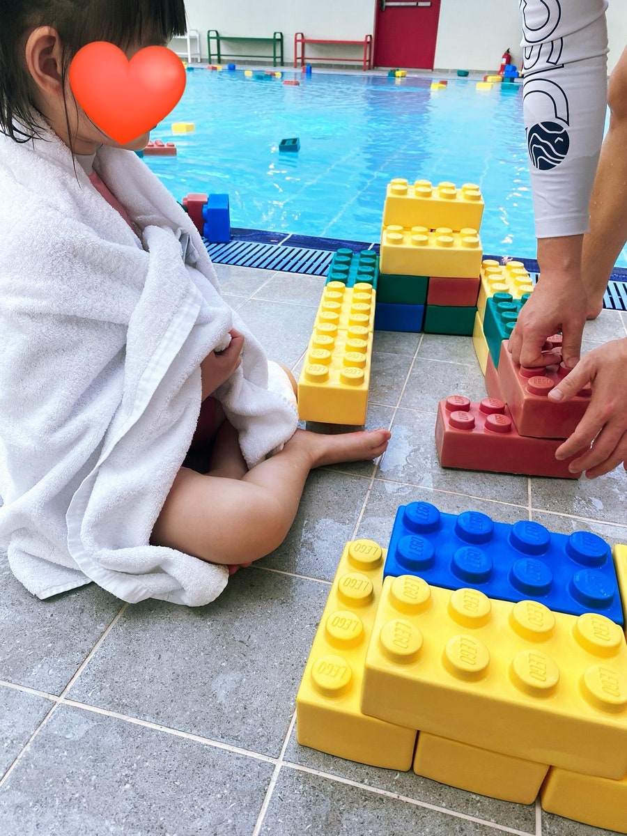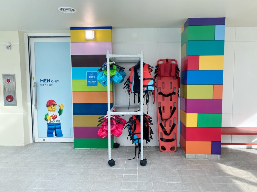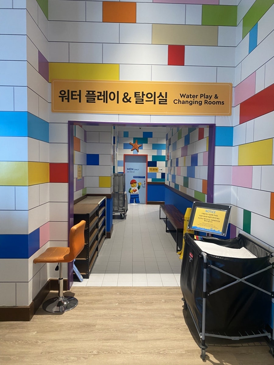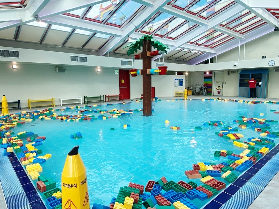 한 눈에 들어오는 아담한 크기의 수영장에서는 레고 세계관을 유지하기 위해 물 위에 수없이 많은 블럭이 동동 떠다니고있었어요! 😂