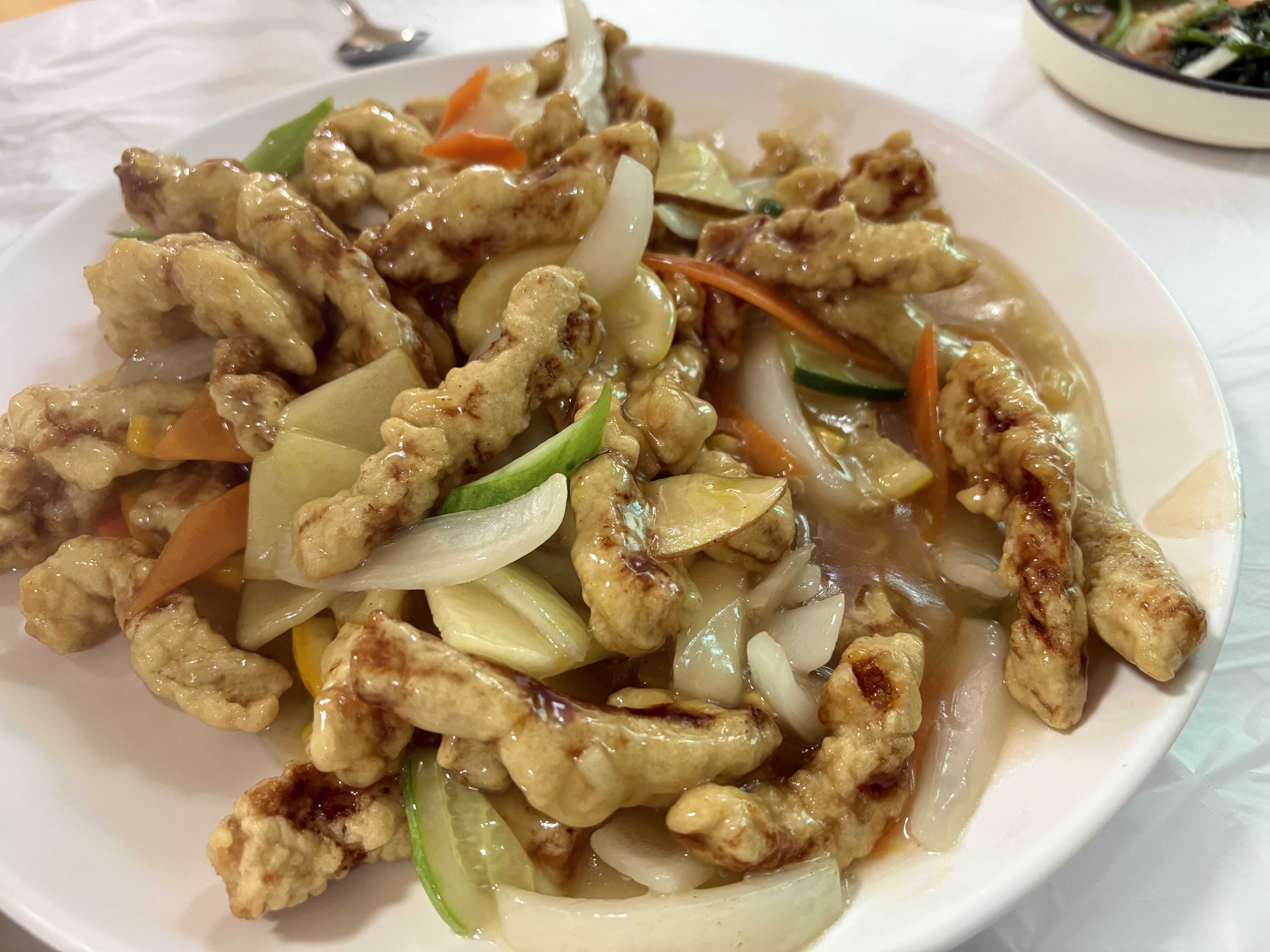 양도 푸짐하고, 무엇보다 튀김이 늘 깨끗하고 바삭해요. 옛날식으로 볶은 스타일인데, 인공적인 새콤함이 아니라 과일로 낸 자연스러운 향과 단맛이 소스에 살아 있어서 자꾸 손이 가요.