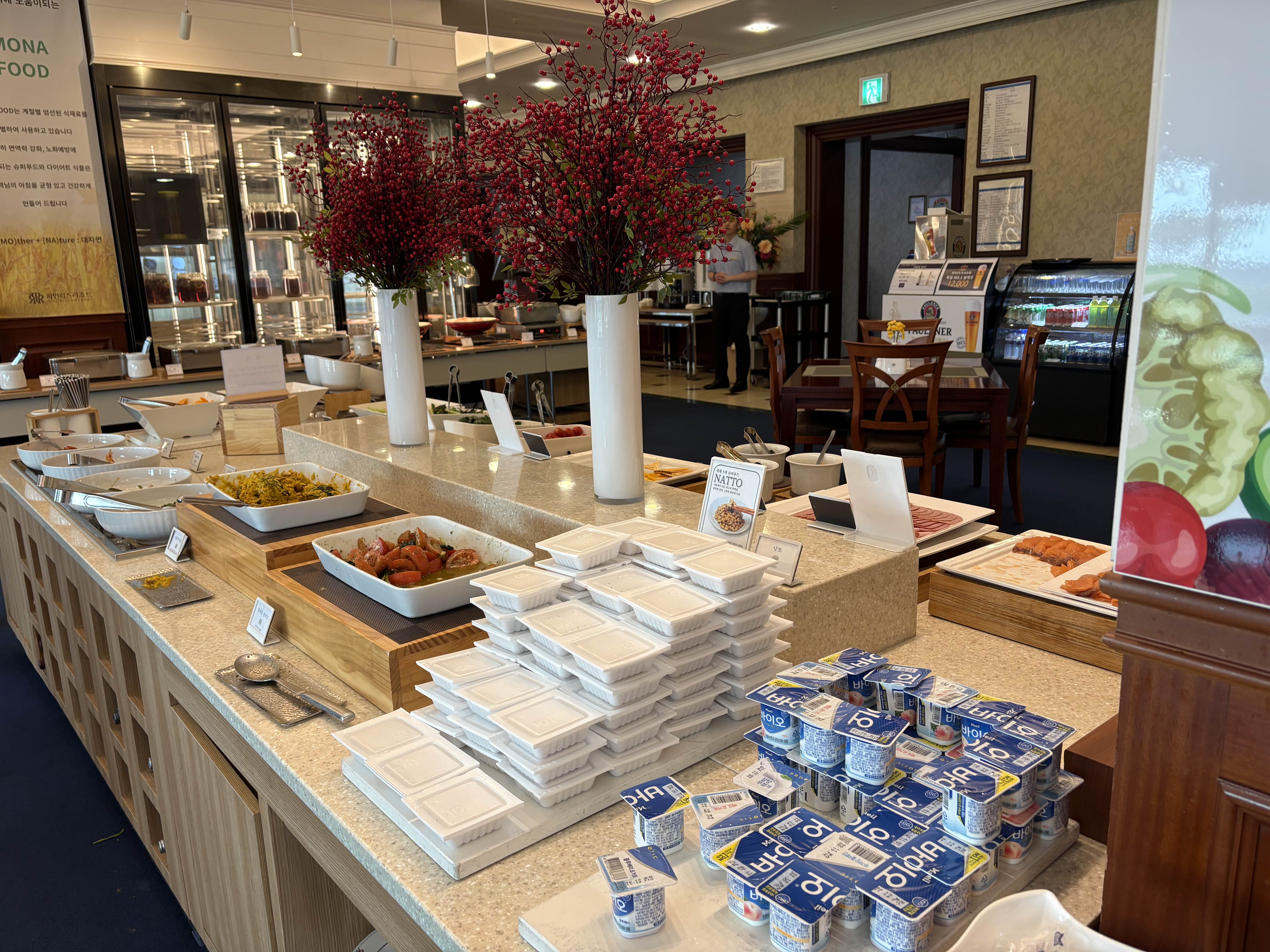 우리는 8시 30분쯤 여유 있게 가서 천천히 식사했어요. 조식 구성도 생각보다 괜찮았어요.
