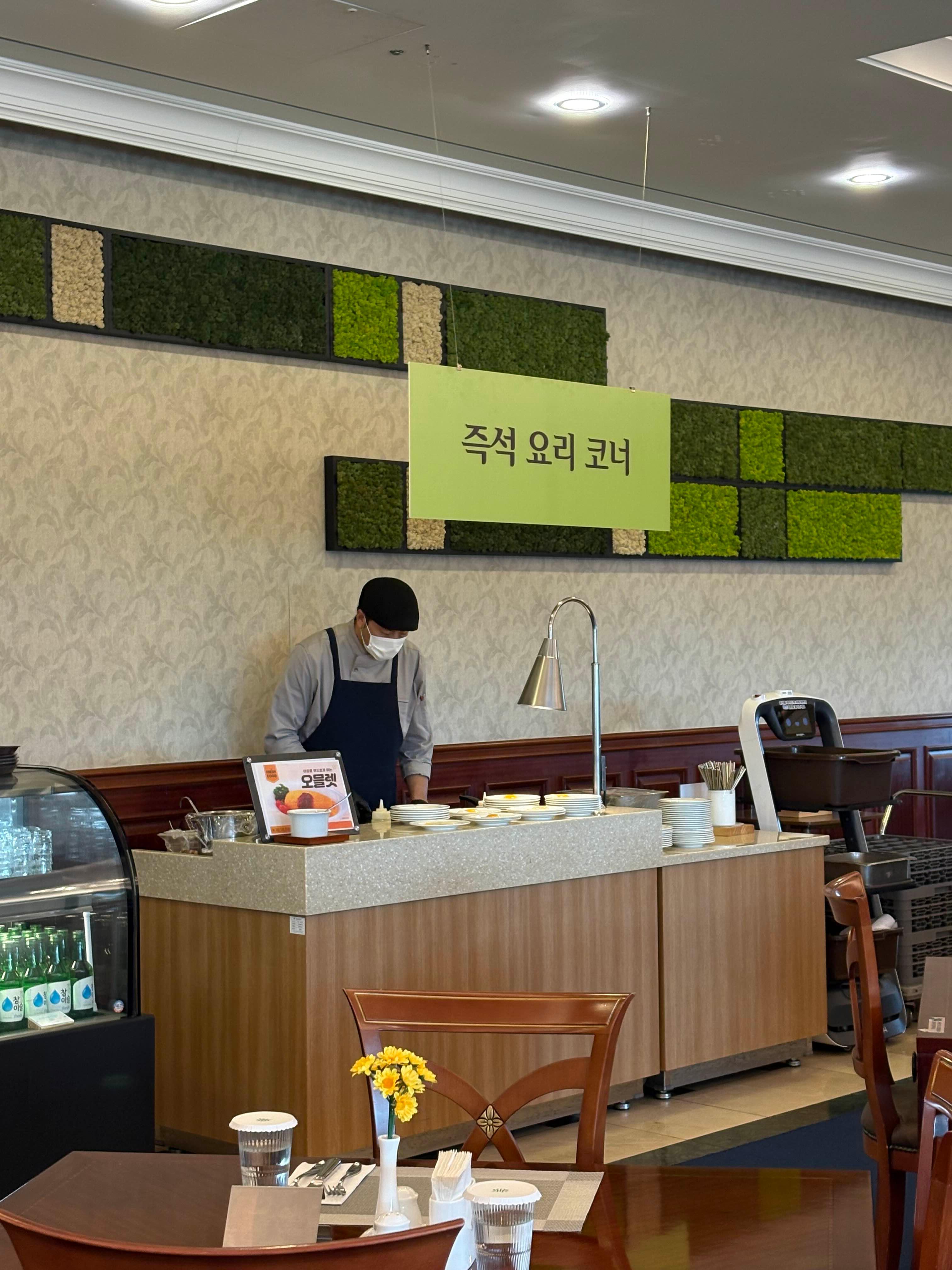 무엇보다 마음에 들었던 건 에그스테이션! 오믈렛이랑 프라잉에그를 바로바로 만들어 주는데 오믈렛이 진짜 맛있었어요.
