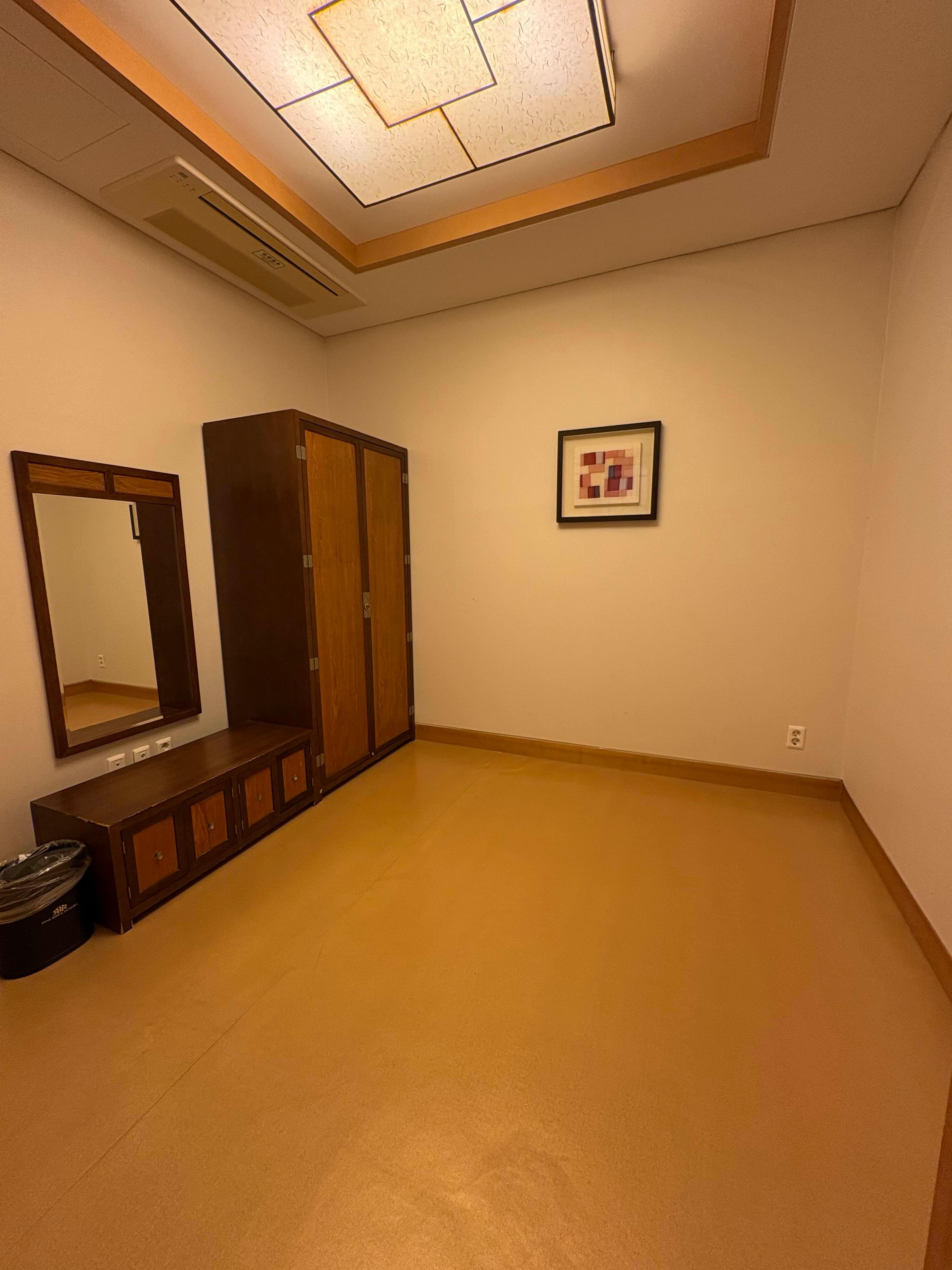 큰 침대방 하나, 이불 두 채가 깔린 온돌방 하나, 그리고 아담한 거실이 있었어요.