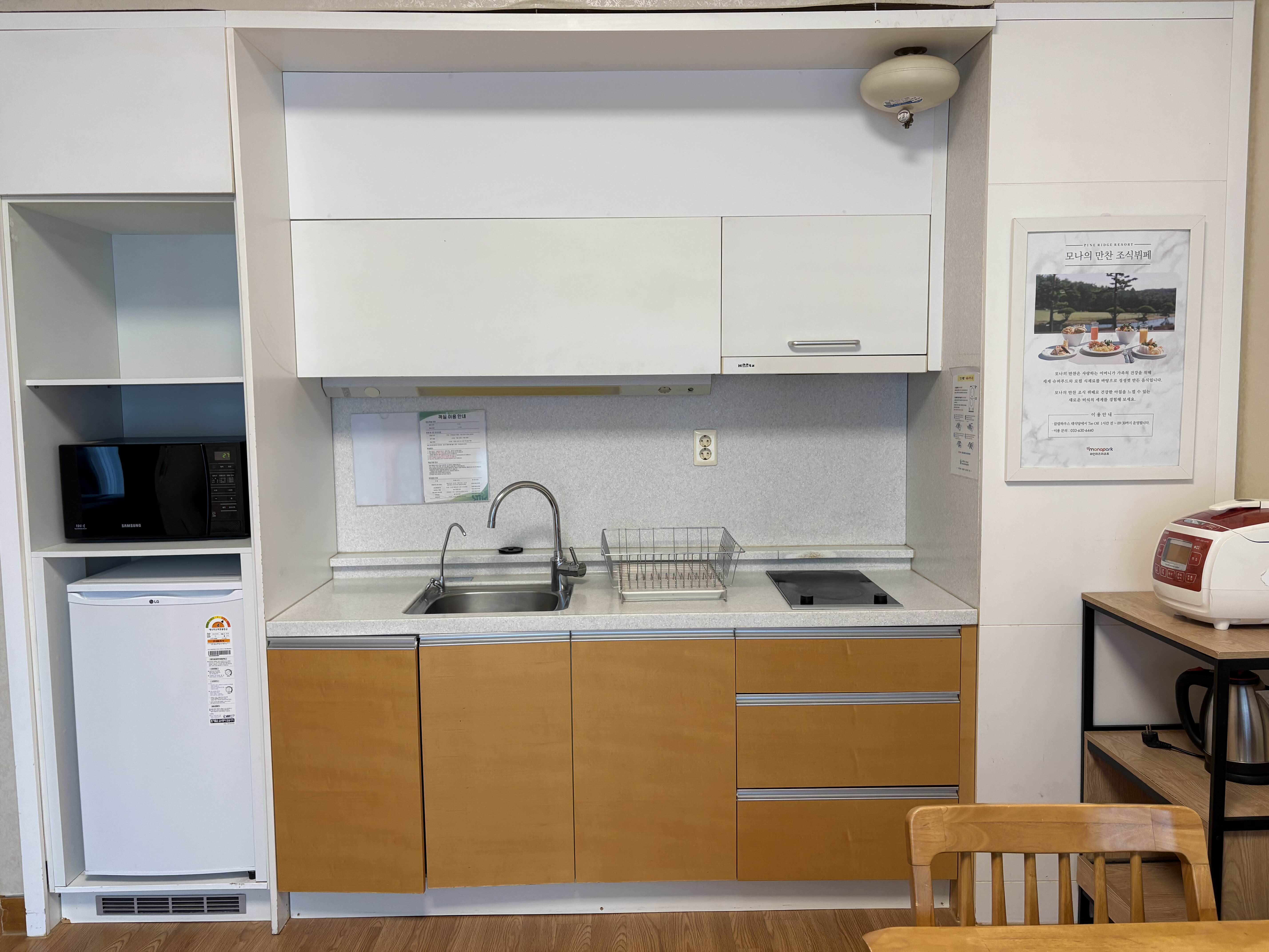 주방에는 리조트답게 간단한 조리가 가능한 집기들이 마련되어 있었고,