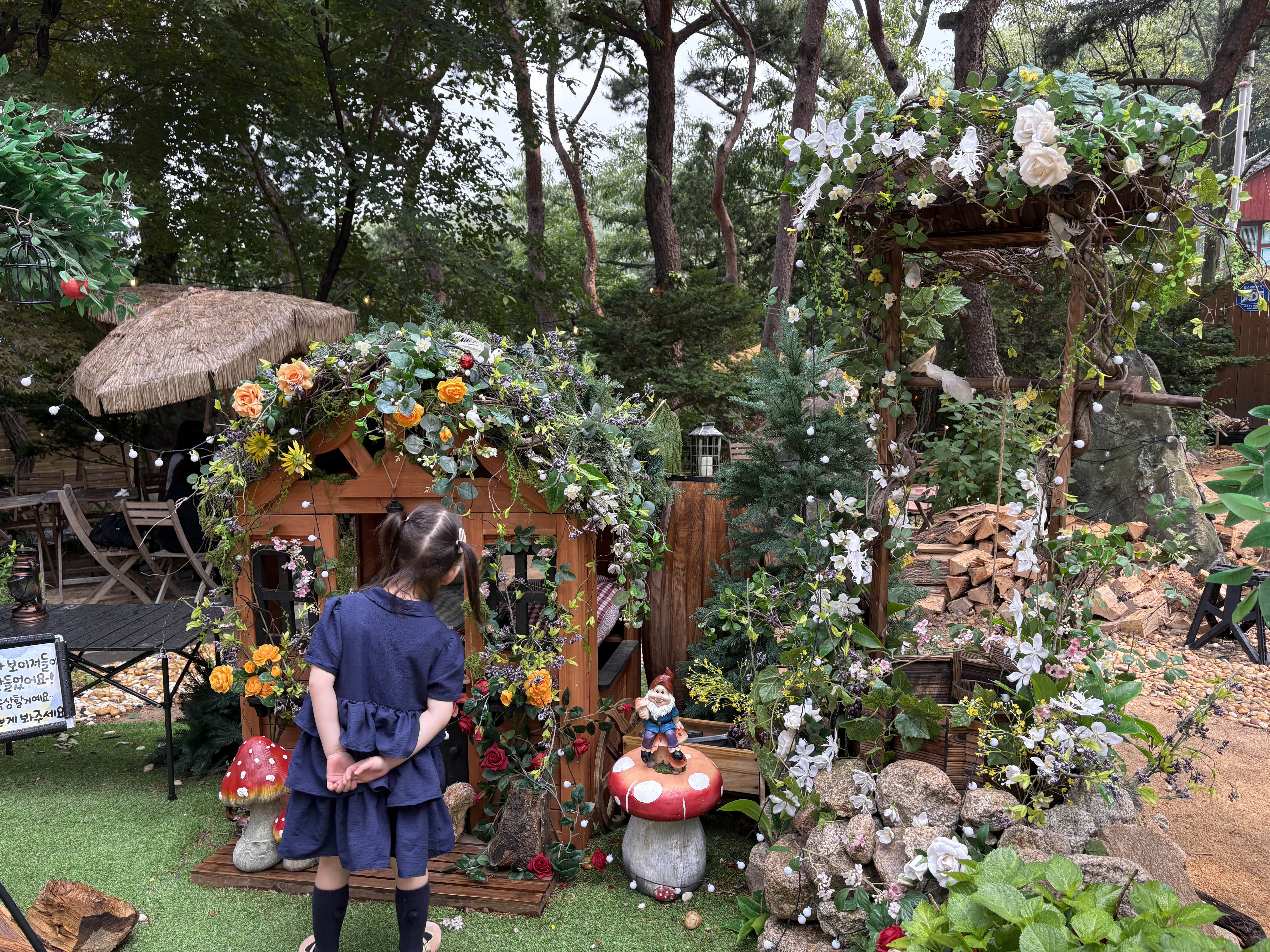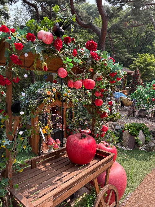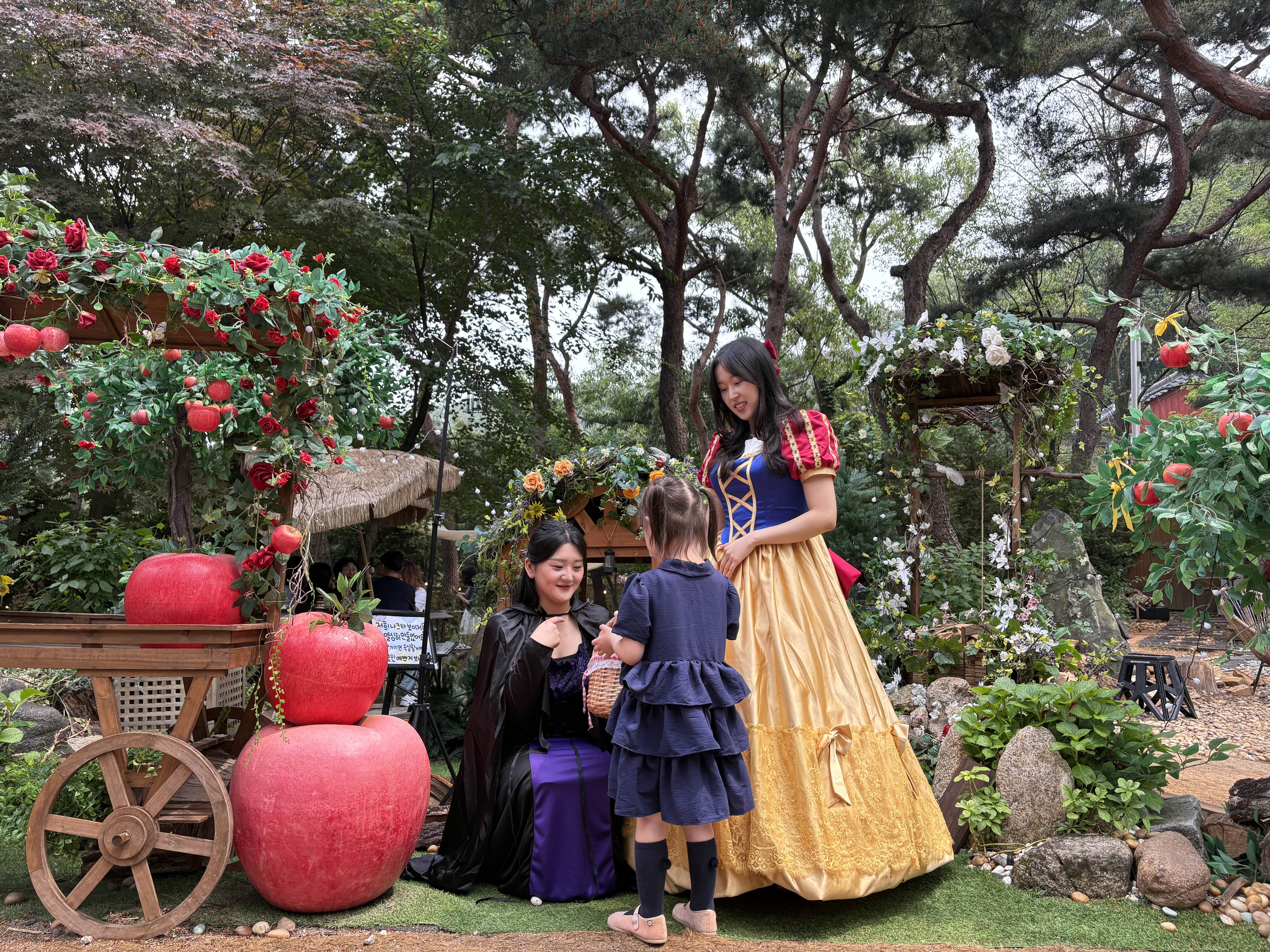 포토존에는 사과 나무와 난장이 집이 숲처럼 예쁘게 재현돼 있어서, 아이와 함께 사진 찍기 딱 좋았어요.
