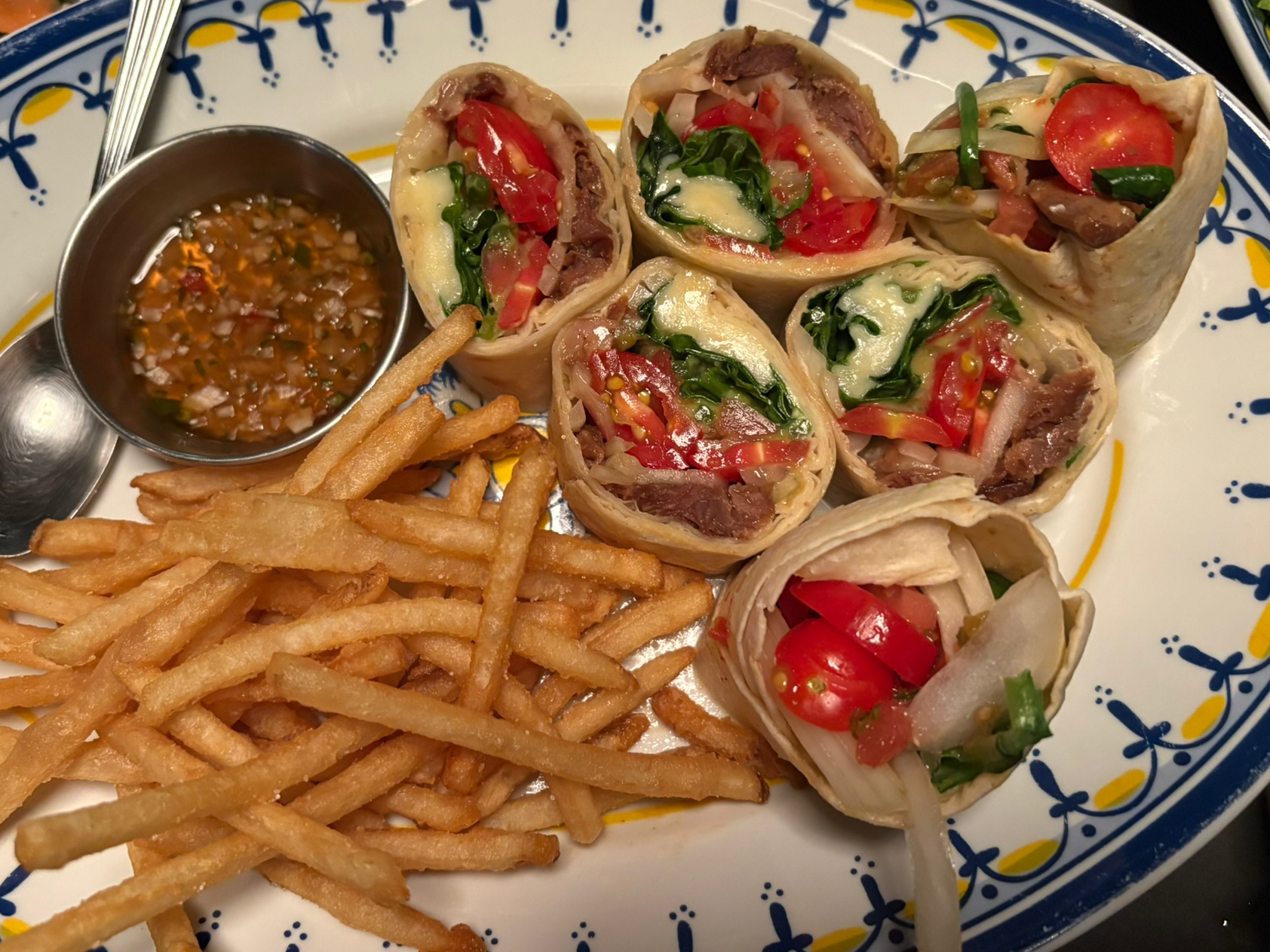 세번째로 주문한 메뉴는 어린양타코. 하드 타코를 좋아흐지만 소프트타코도 주는 대로 잘먹는 나란 사람. 양고기 잡내가 거의 없고 들어간 재료가 풍부해서 한조각만 먹어도 배가 불렀다. 사진을 보다보니 요리들의 국적이 정말 다양하네 ㅎ