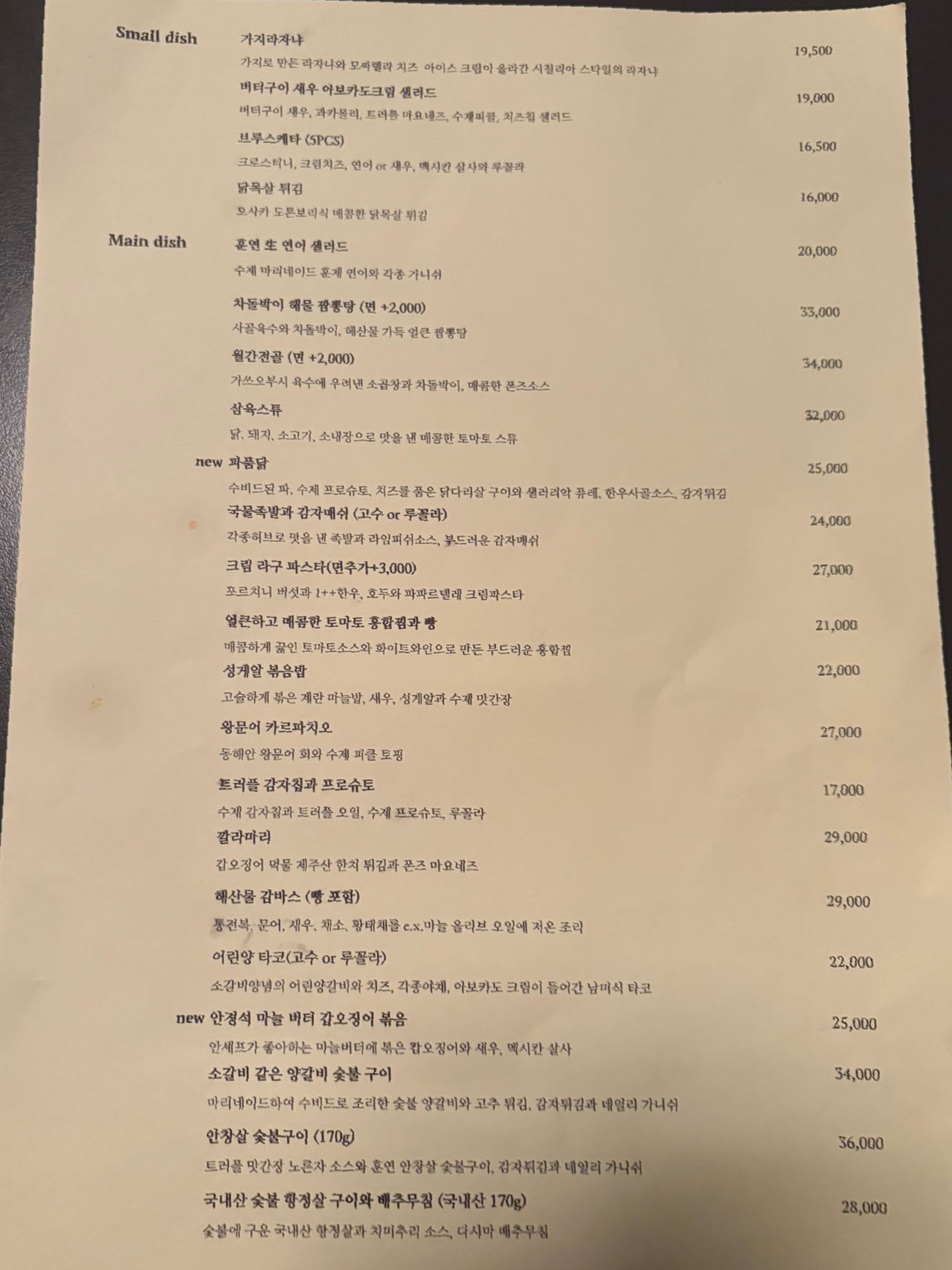 무난하게 뉴질랜드 말보로 쇼비뇽 블랑을 시켰는데 굴이랑은 조금 아쉬웠다. 다음엔 조금 더 맛을 배가시키는 조합을 찾아봐야겠다.