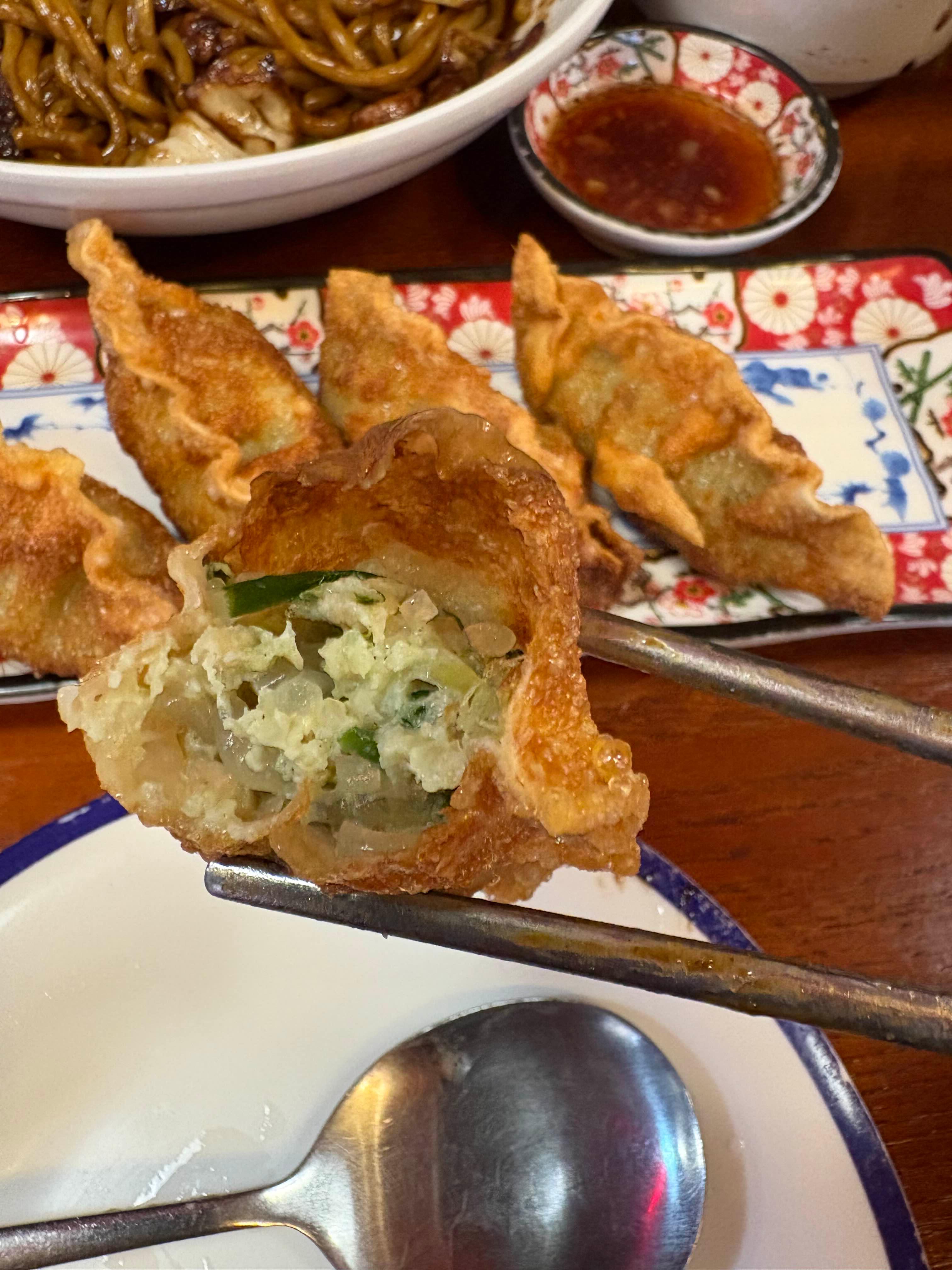 사이드로 주문한 군만두도 기대 이상이었어요. 바삭한 만두피 안에 육즙 가득한 속이 꽉 차 있어서 하나하나 정성스럽게 만든 느낌. 겉바속촉의 정석이랄까요? 새콤달콤한 간장 소스에 찍어 먹으면 금세 한 접시 뚝딱입니다.