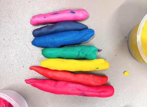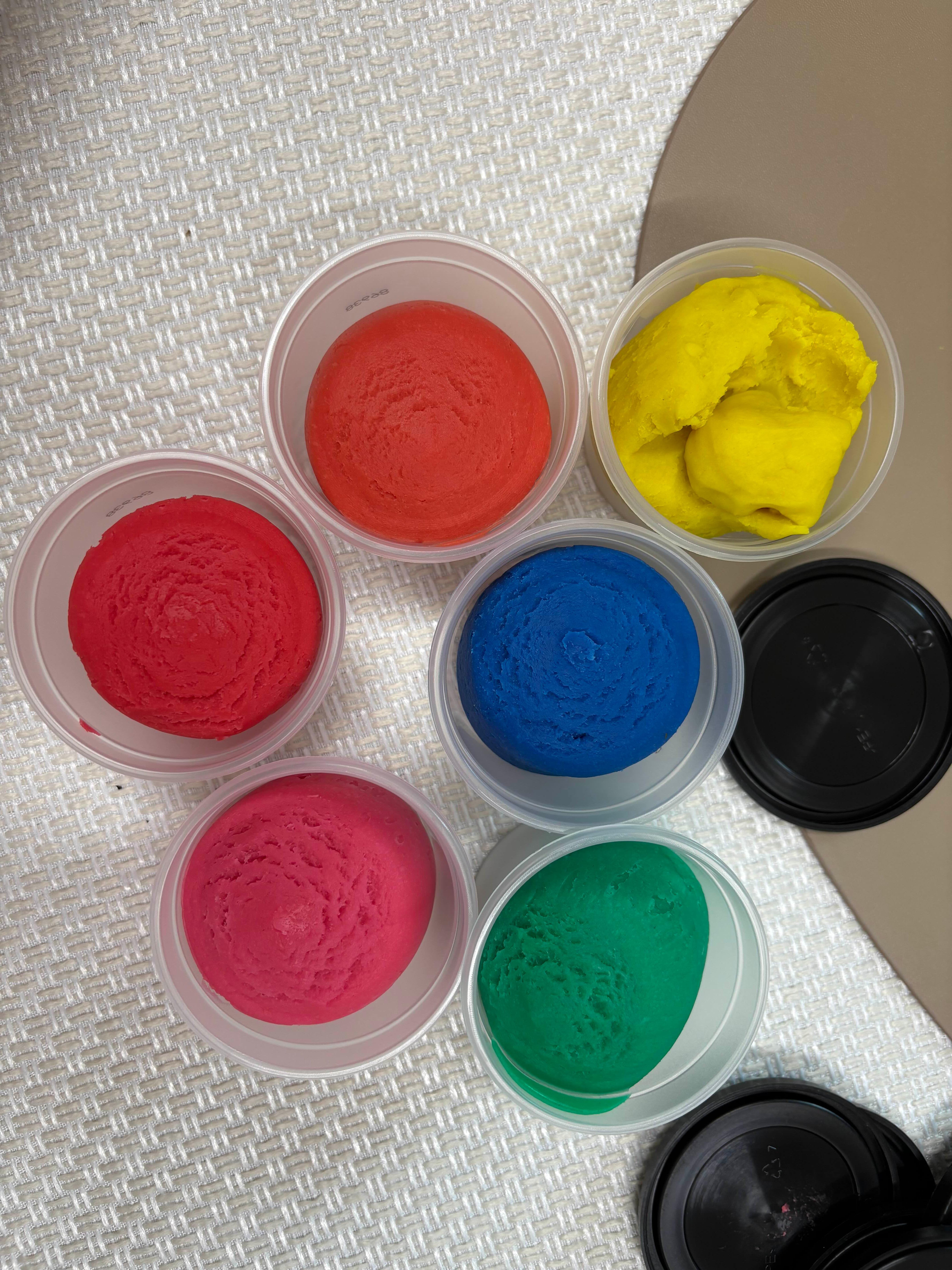 색 조합도 너무 예쁘고, 섞었을 때 새로운 색 만들어지는 것도 아이가 정말 좋아했어요. 다만 플레이도우 보다는 점성이 좀 더 있어서 손에 좀 잘 달라붙는 편이에요.