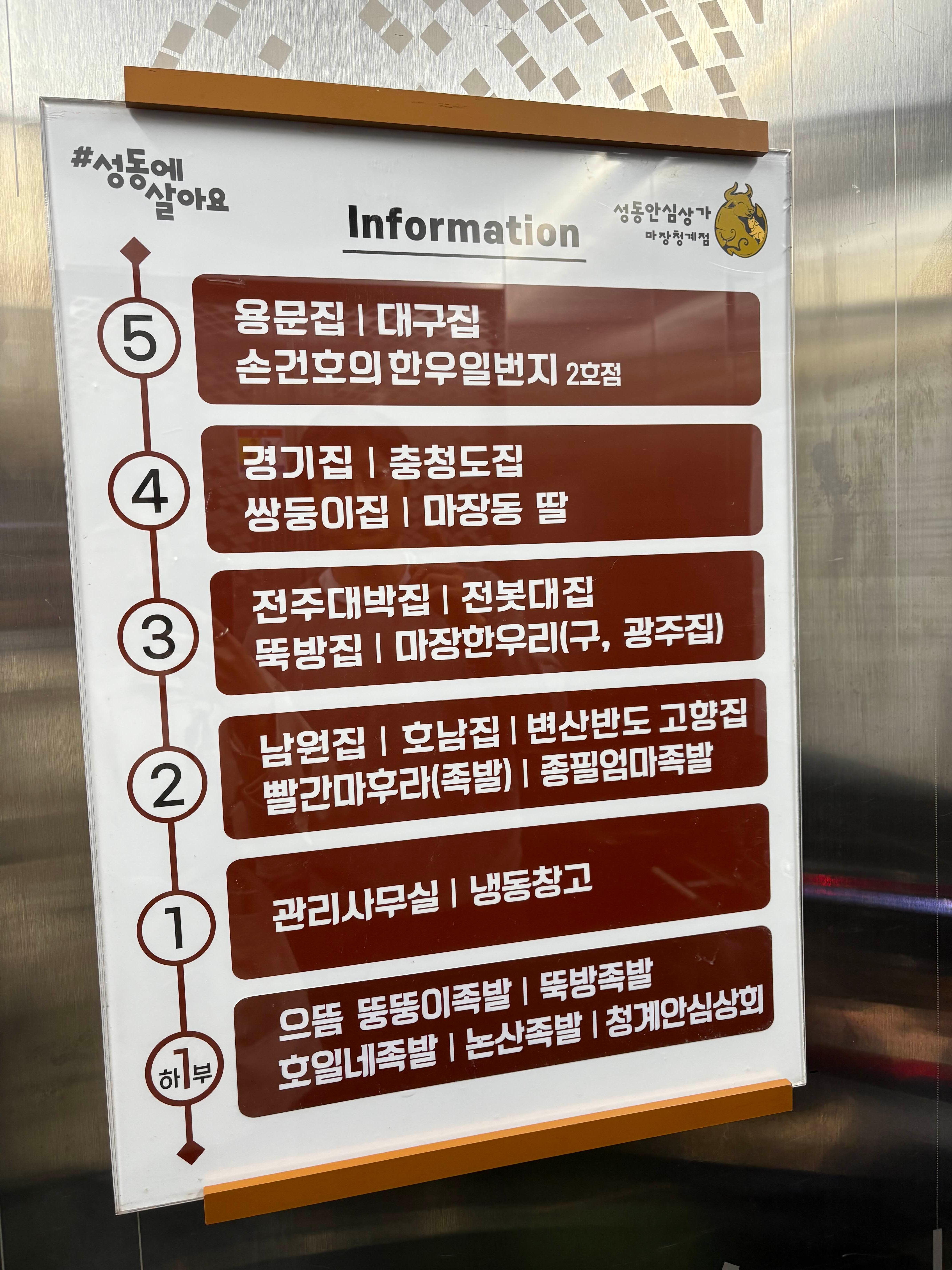 • 주소: 서울특별시 성동구 살곶이길 40, 마장동 먹자골목타운 3층