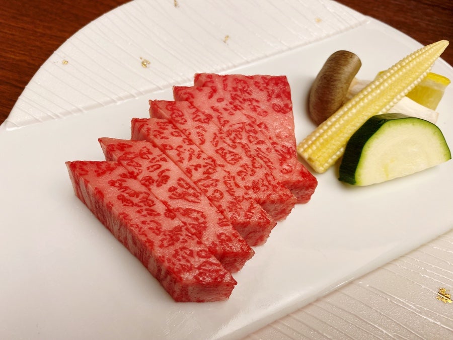 기본 코스에는 로스구이와 스키야키용 소고기가 나오는데, 각각의 조리법으로 즐기는 오미규의 다채로운 맛을 경험할 수 있어요.
