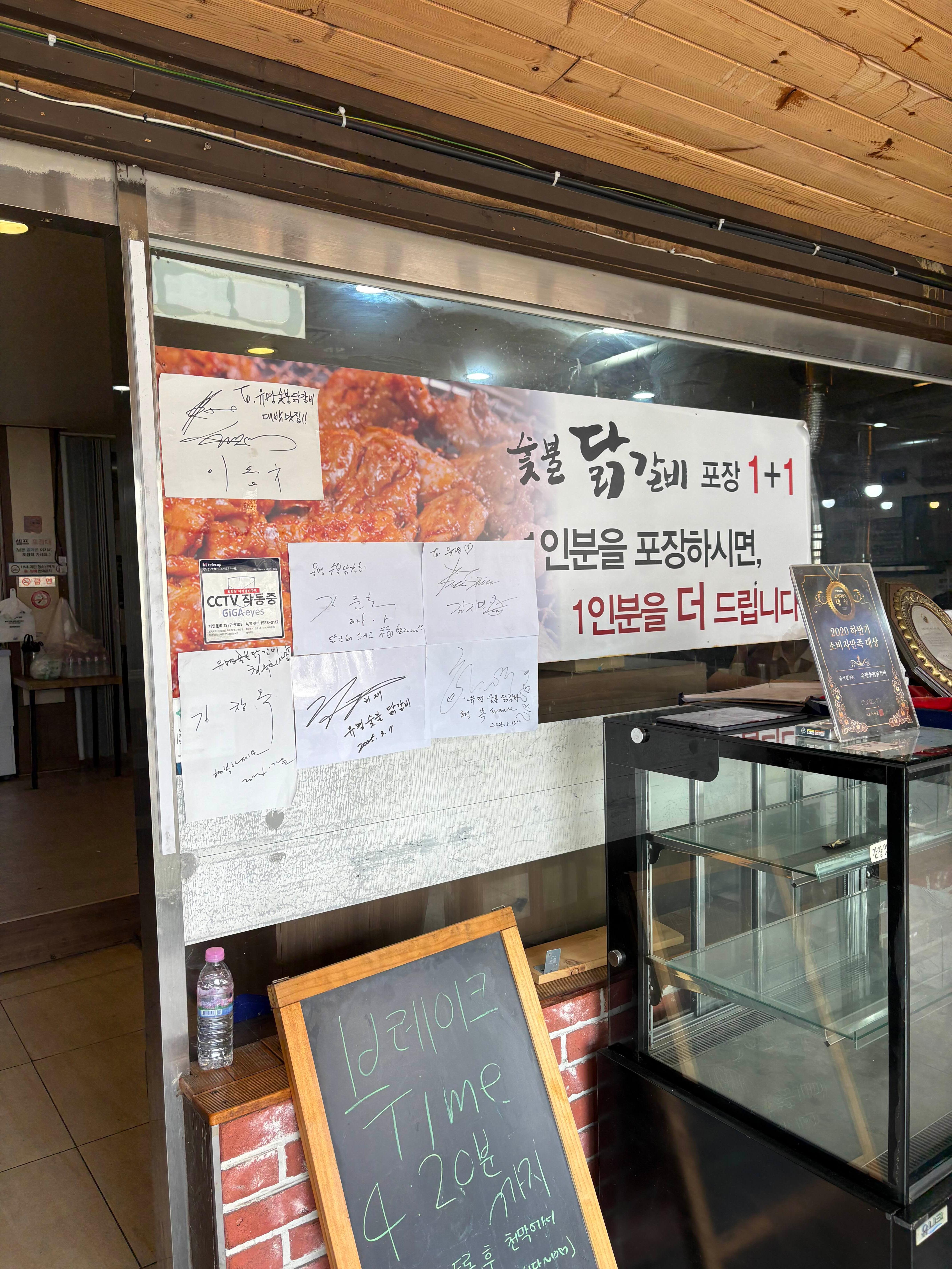 입구 옆에는 닭갈비를 초벌하는 모습을 볼 수 있는 공간도 있었어요. 10분 정도 대기공간 (천막)에서 기다리다가 알림을 받고 입장했어요.