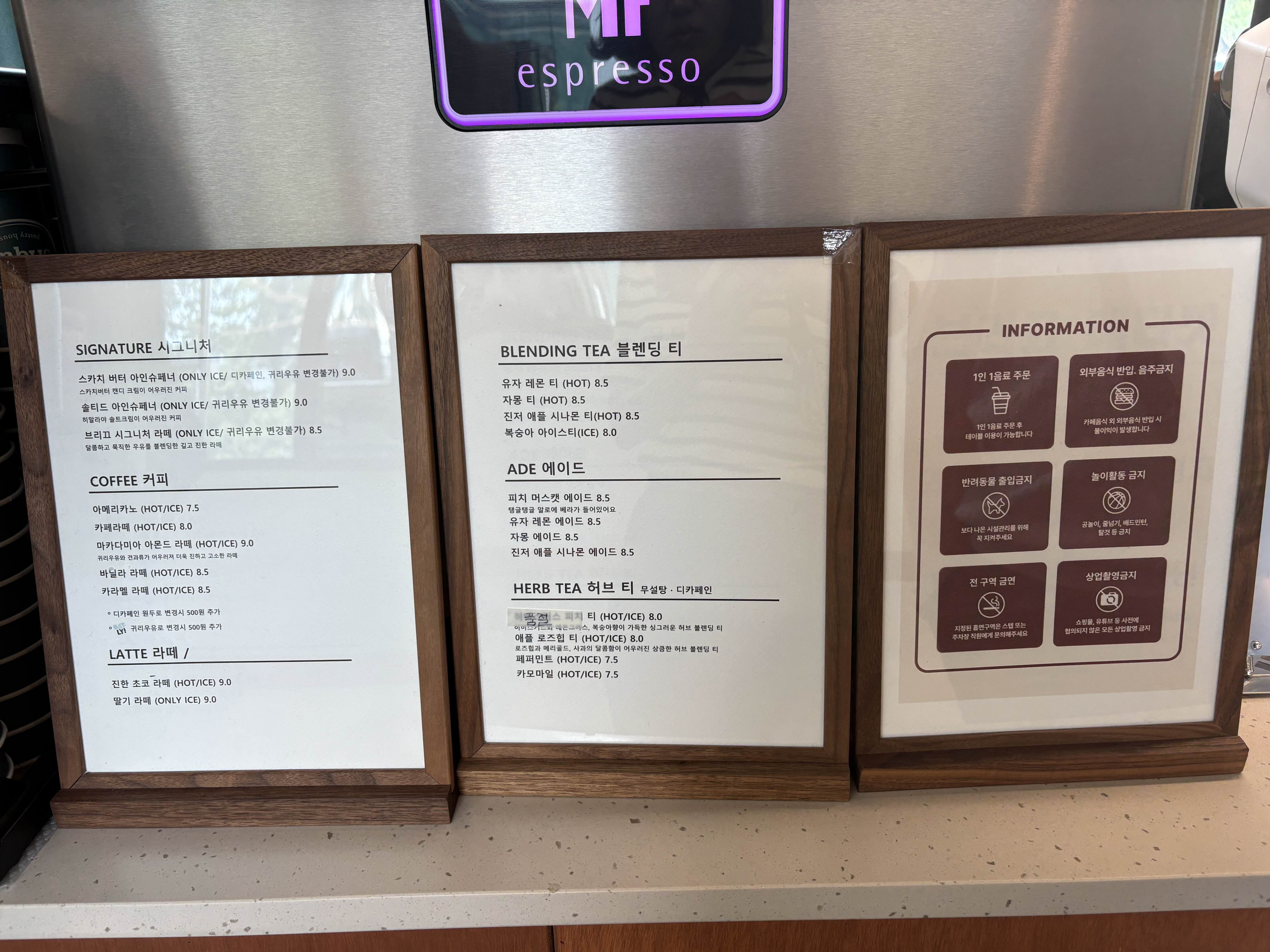 저희는 아이와 함께 마실 아이스초코와 피치머스캣 에이드를 먼저 주문했고,