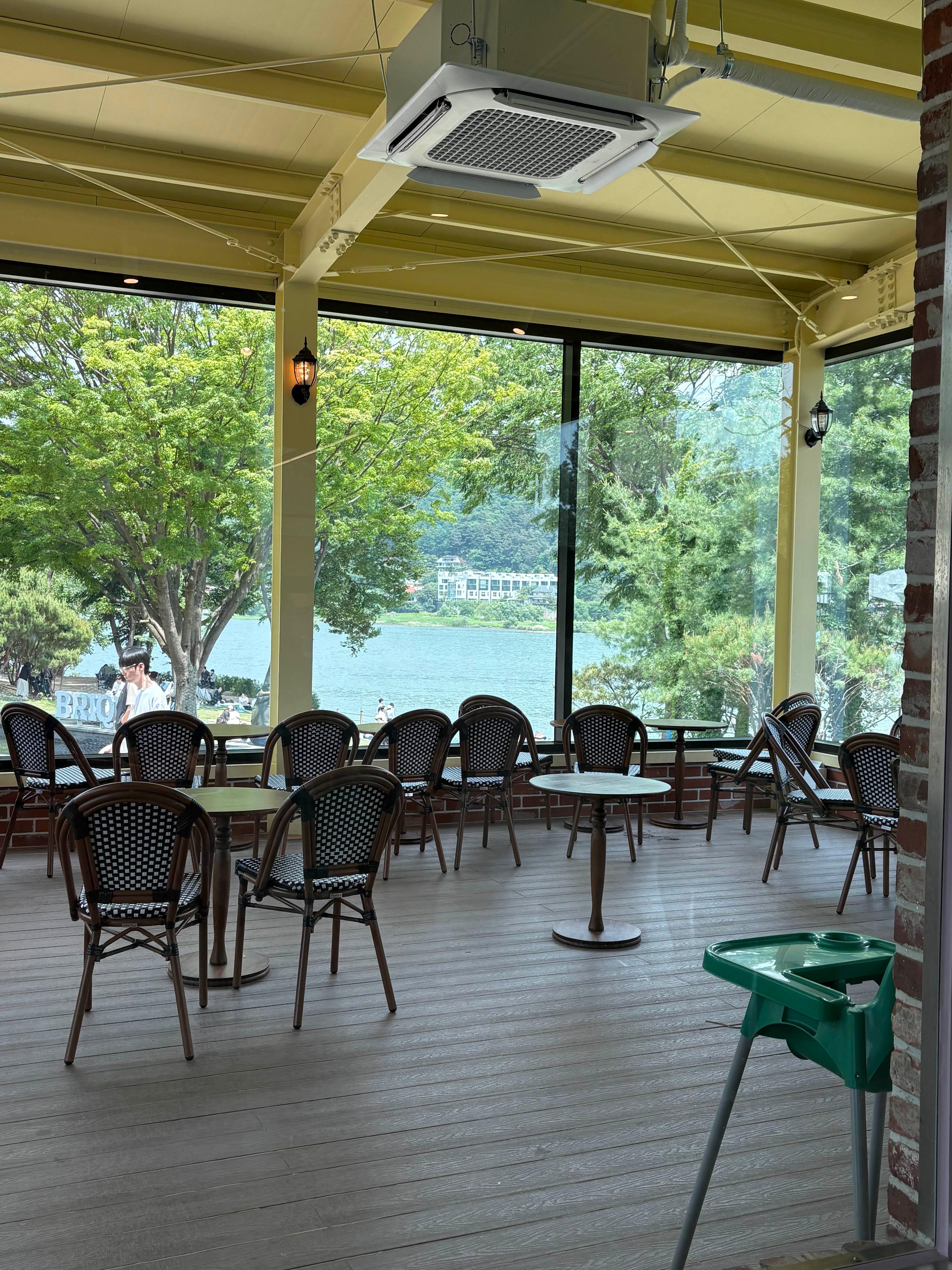 브리끄는 생각보다 꽤 큰 규모의 카페로, 북한강이 시원하게 내려다보이는 잔디밭과 실내외 공간이 잘 분리되어 있어요.