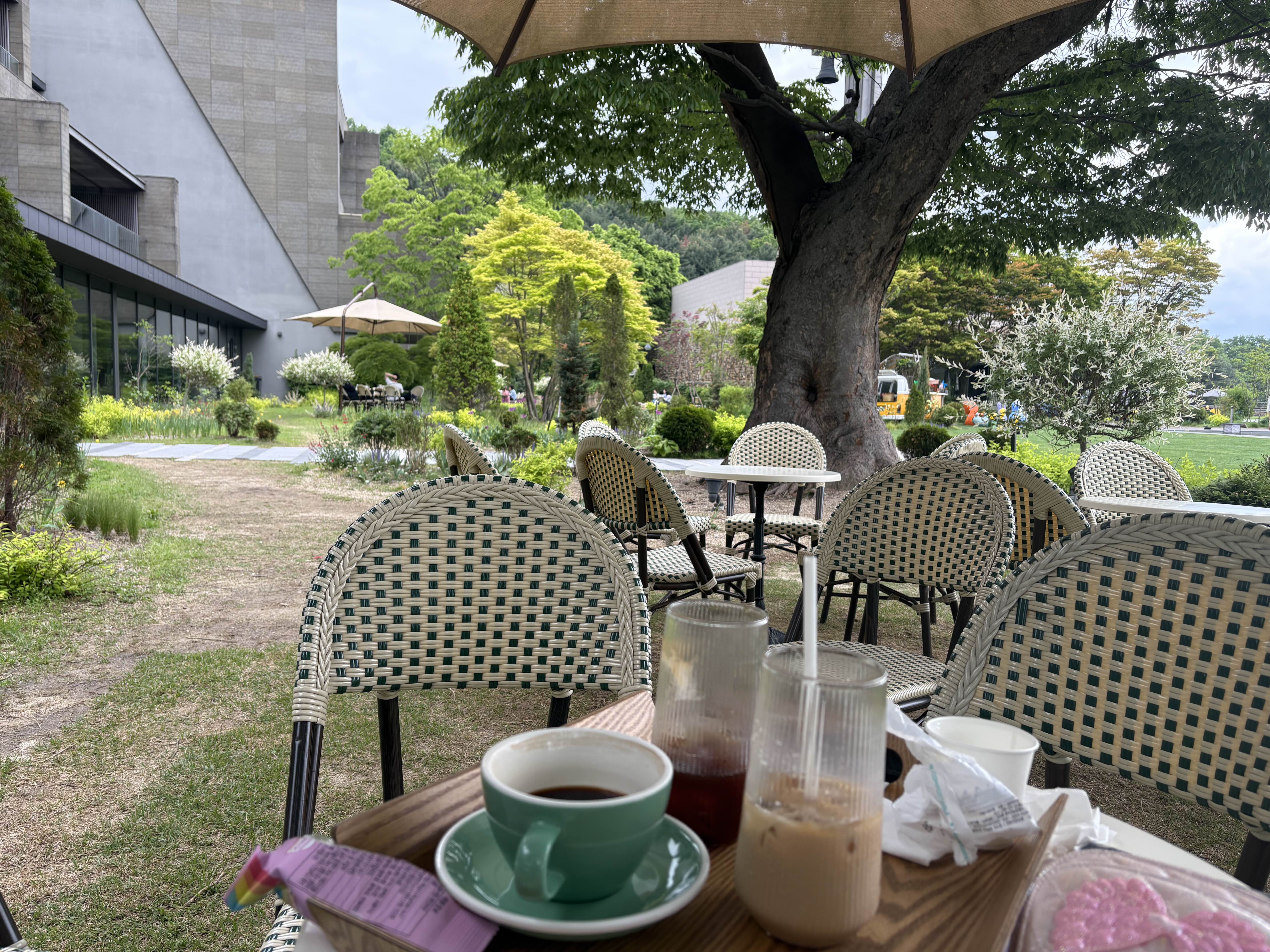 카페를 이용하면 자연 속 넓은 야외 정원도 함께 이용할 수 있어요.