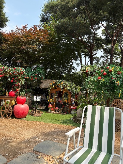 포토존에는 사과 나무와 난장이 집이 숲처럼 예쁘게 재현돼 있어서, 아이와 함께 사진 찍기 딱 좋았어요.