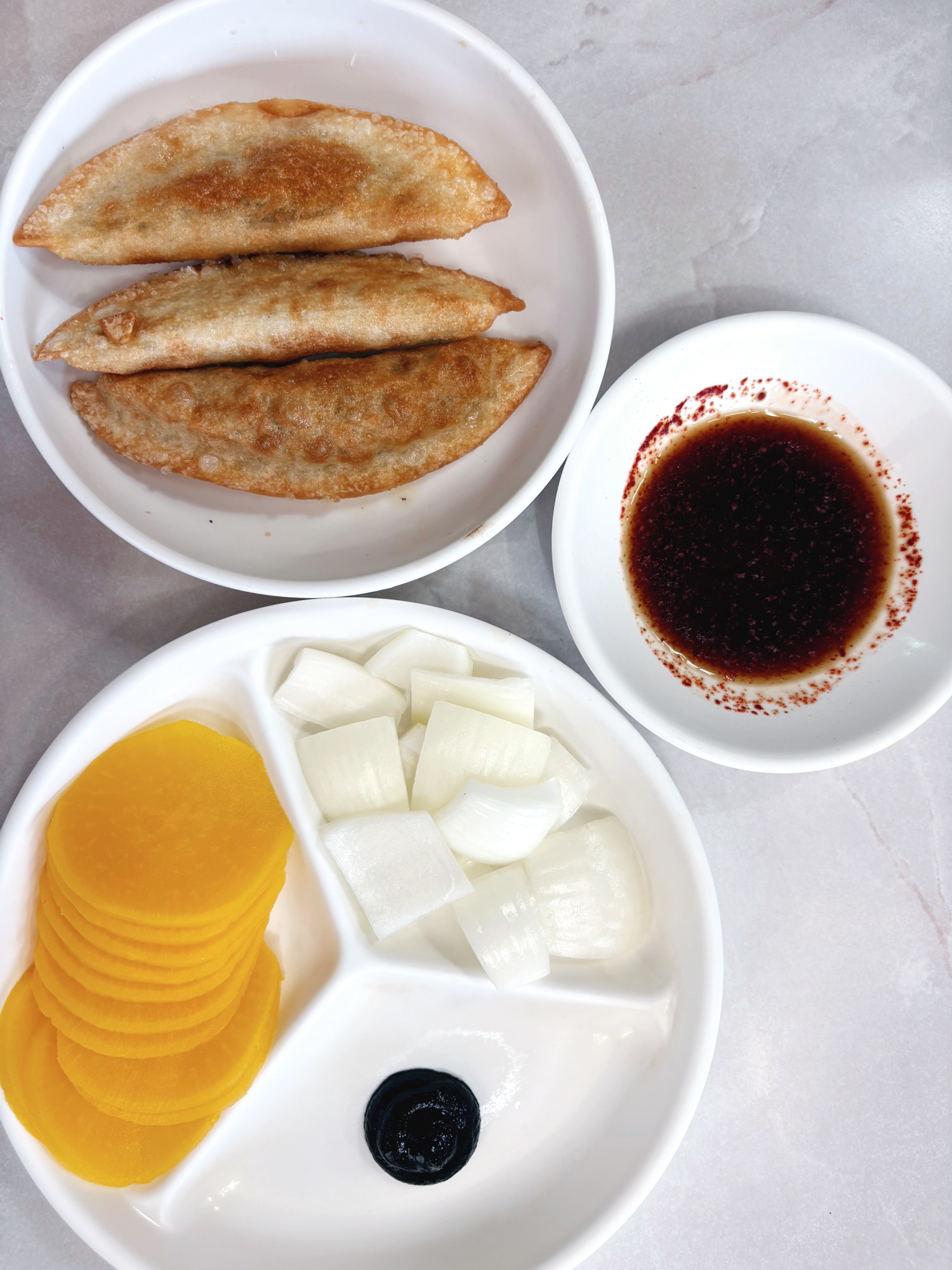 탕수육을 시키면 나오는 서비스 군만두. 따끈하니 속도 적장히 차있고 맛있었다.