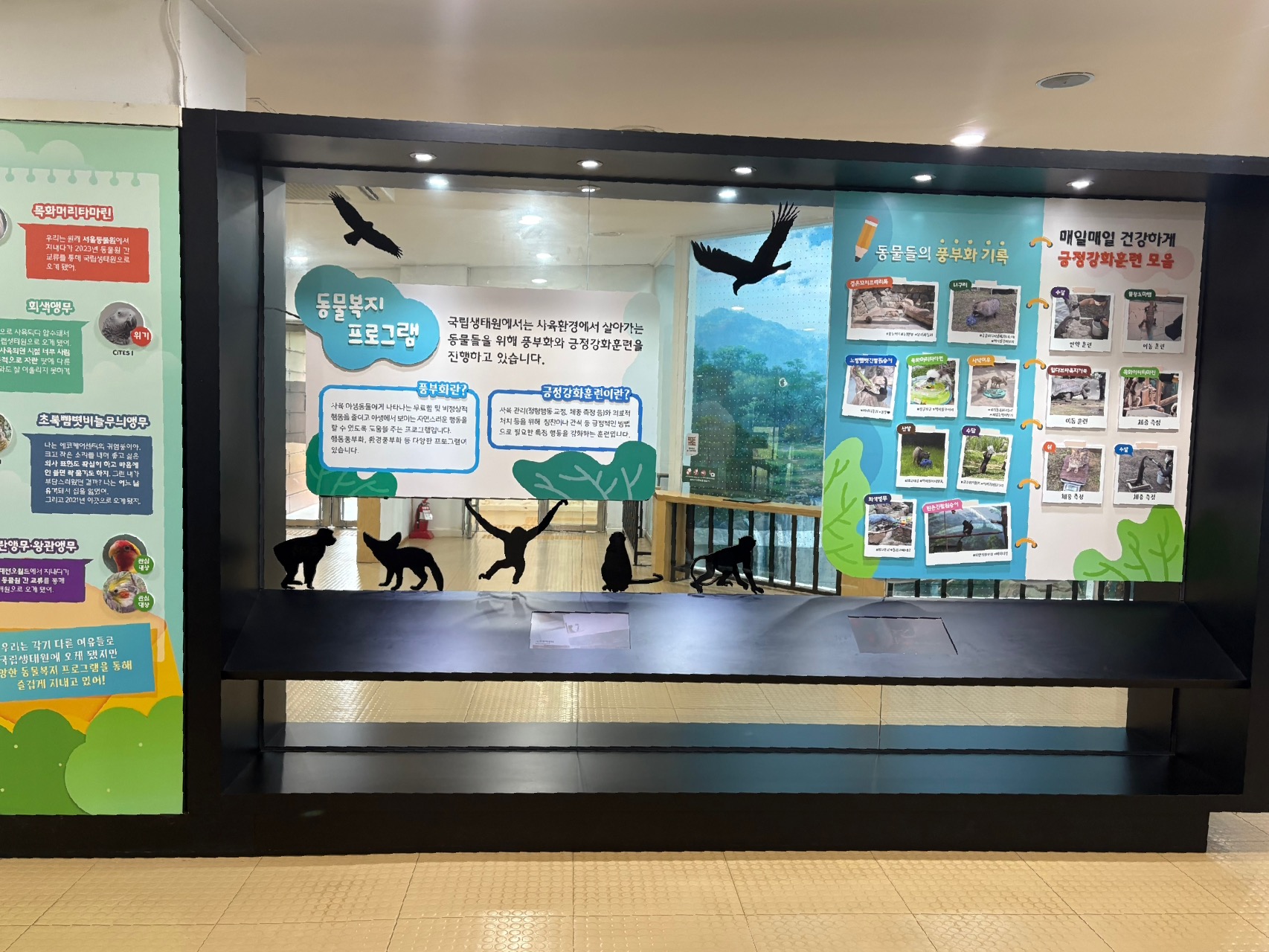 주된 해설이 이루어지는 에코케어센터에 들어가면 밀렵 등 불법적 방법으로 수집됐다가 구출되는 등 보호가 필요한 멸종위기 동물들을 관리하고 있는 모습을 볼 수 있다.
