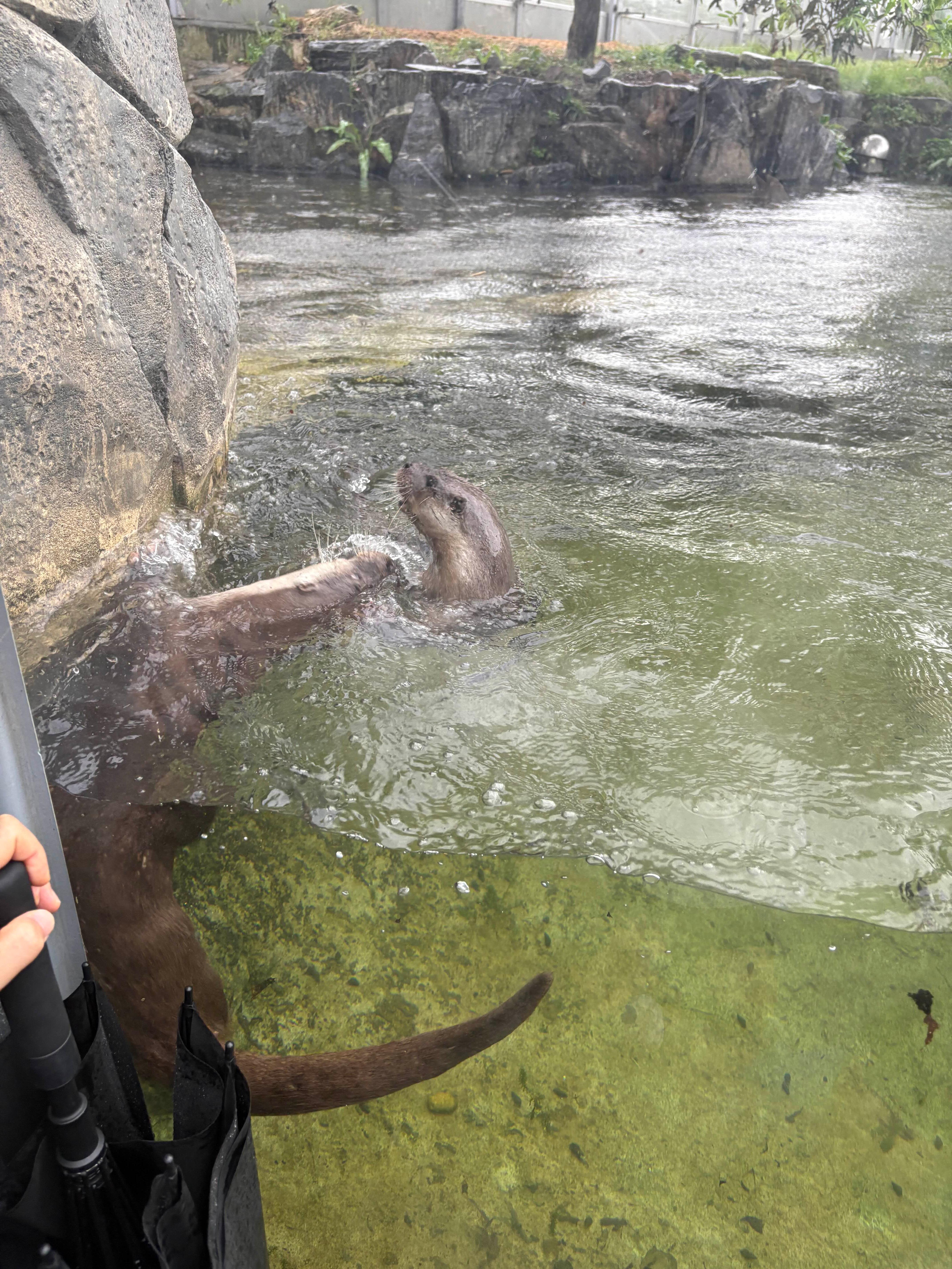 주된 해설이 이루어지는 에코케어센터로 가는 길 야외에서 수달사를 볼 수 있는데 수달 커플이 신나게 수영하고 노는 모습을 꽤나 가까이서 볼 수 있다.