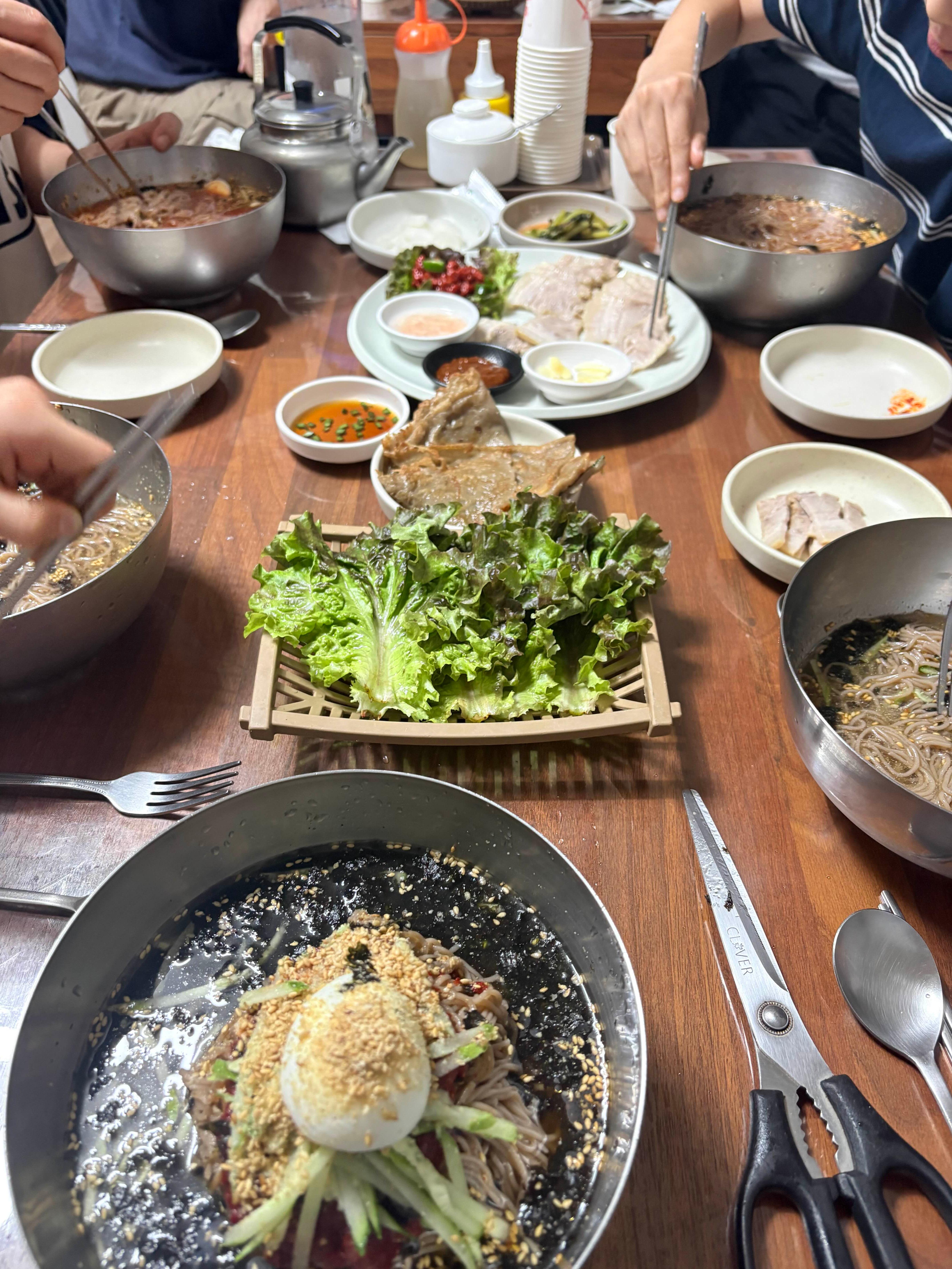 대가족이 함께 하는 강릉여행 첫 식사는 막국수로 정했다.