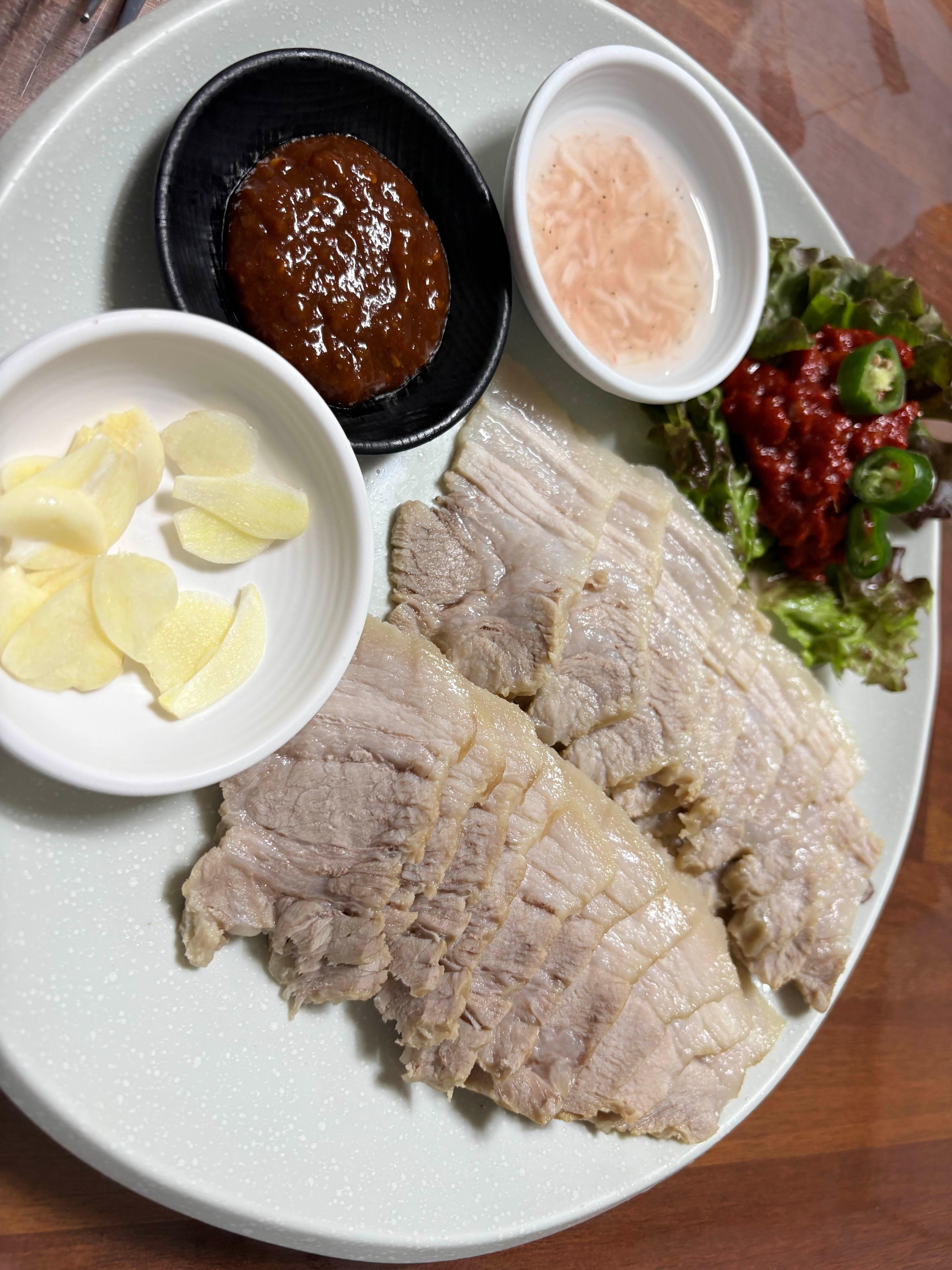 우리쪽 테이블에 나온 소자 수육. 고기가 야들야들하고 잡내 없이 잘 삶아져서 어른들도 아이들도 맛있게 먹었다. 함께 나온 명태식혜 곁들여 먹으면 더 맛있다.