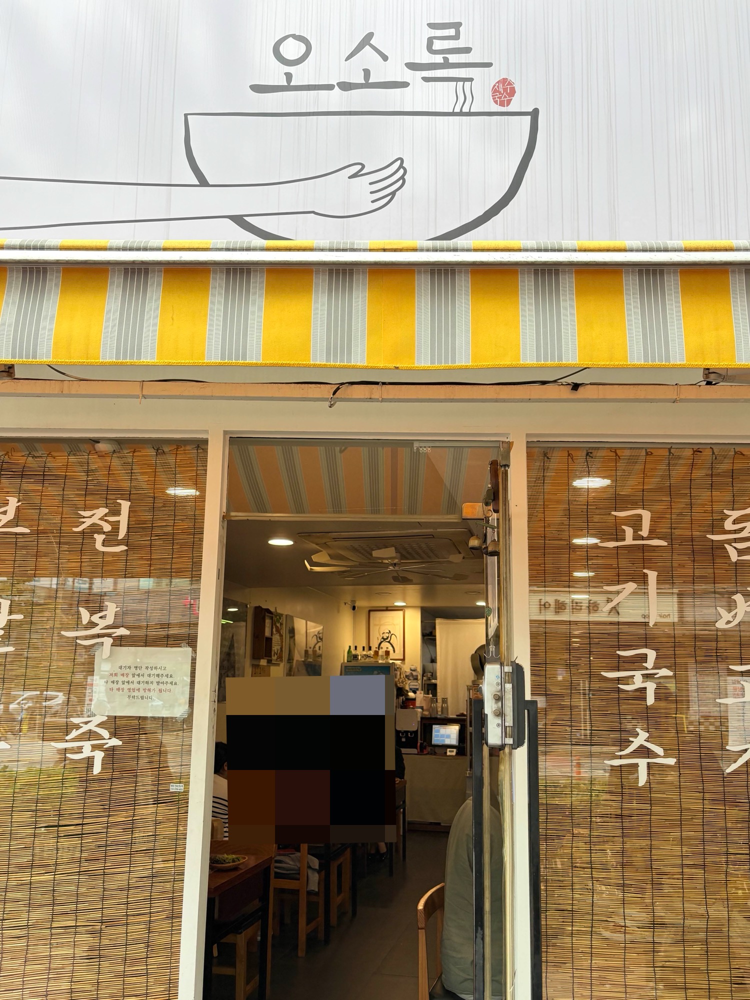 오소록은 답십리 현대시장 정문과 가까운 곳에 있어서 웨이팅이 길면 살짝 시장 구경을 다녀와도 좋겠다 싶었다. 우리 앞에 5팀 정도가 있었고, 20분 정도 기다렸다가 들어갈 수 있었다. 가게 내부는 아담하고 4인테이블이 6개 정도 있다.