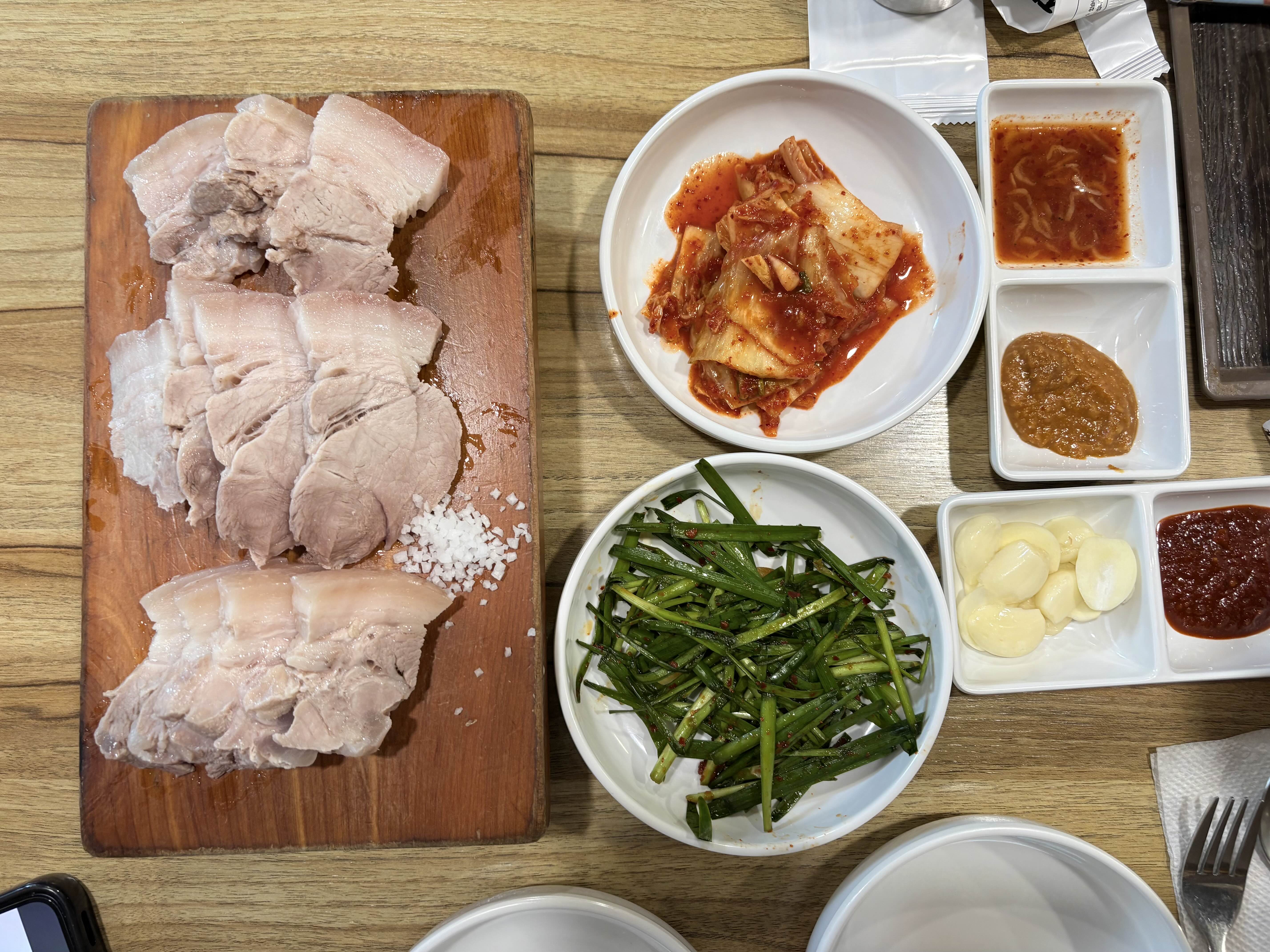 곁들여먹는 장도 여러가지라 소금만 찍어서 먹었다가 새우젓 올렸다가 쌈싸먹었다가 요리조리 먹어봤다.