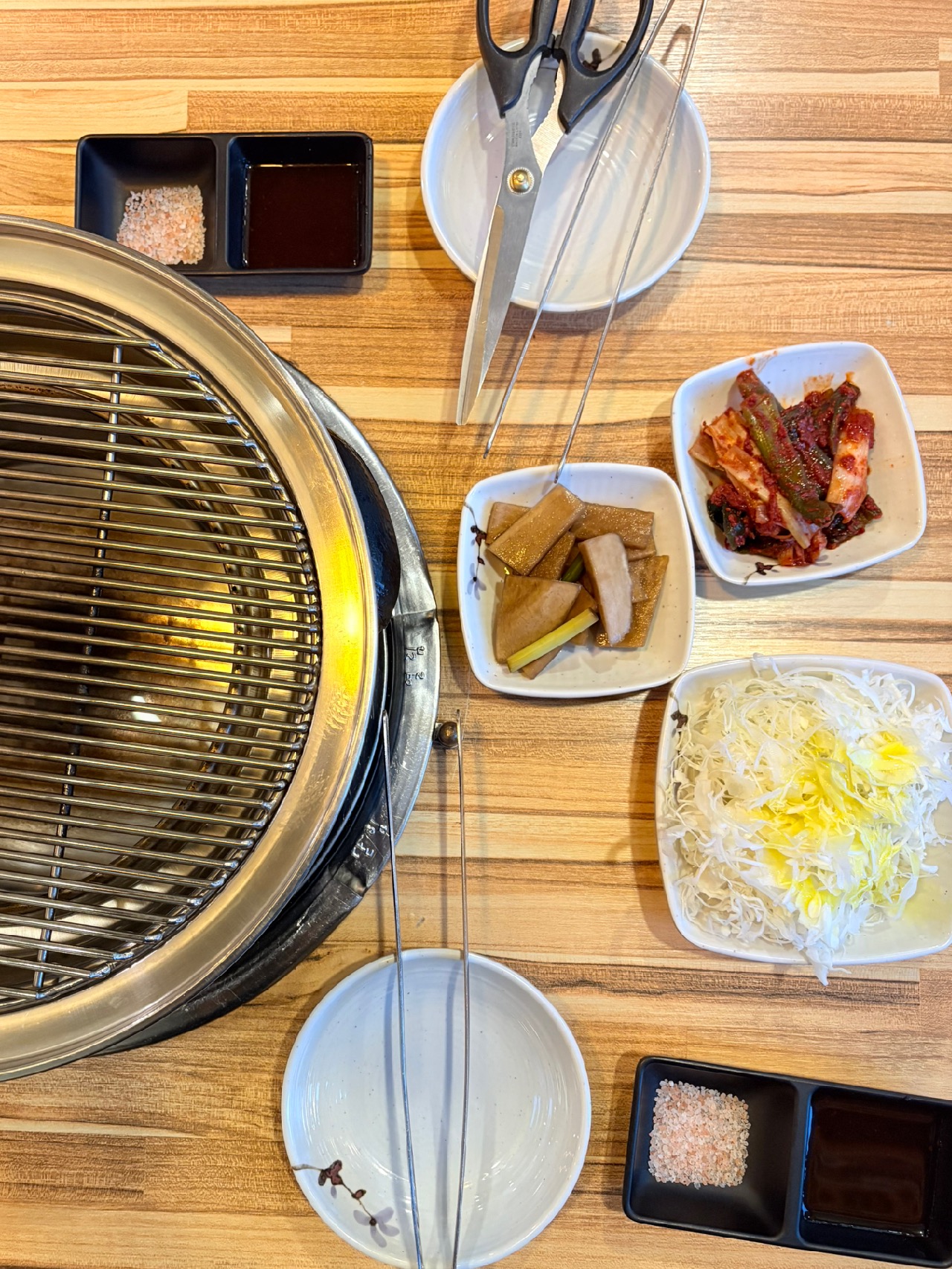 날씨 추워지니 뜨끈한 숯불 불판 앞이 좋아지고요. 고기 판도 요청하면 바로바로 갈아주셔서 불편함이 없다.