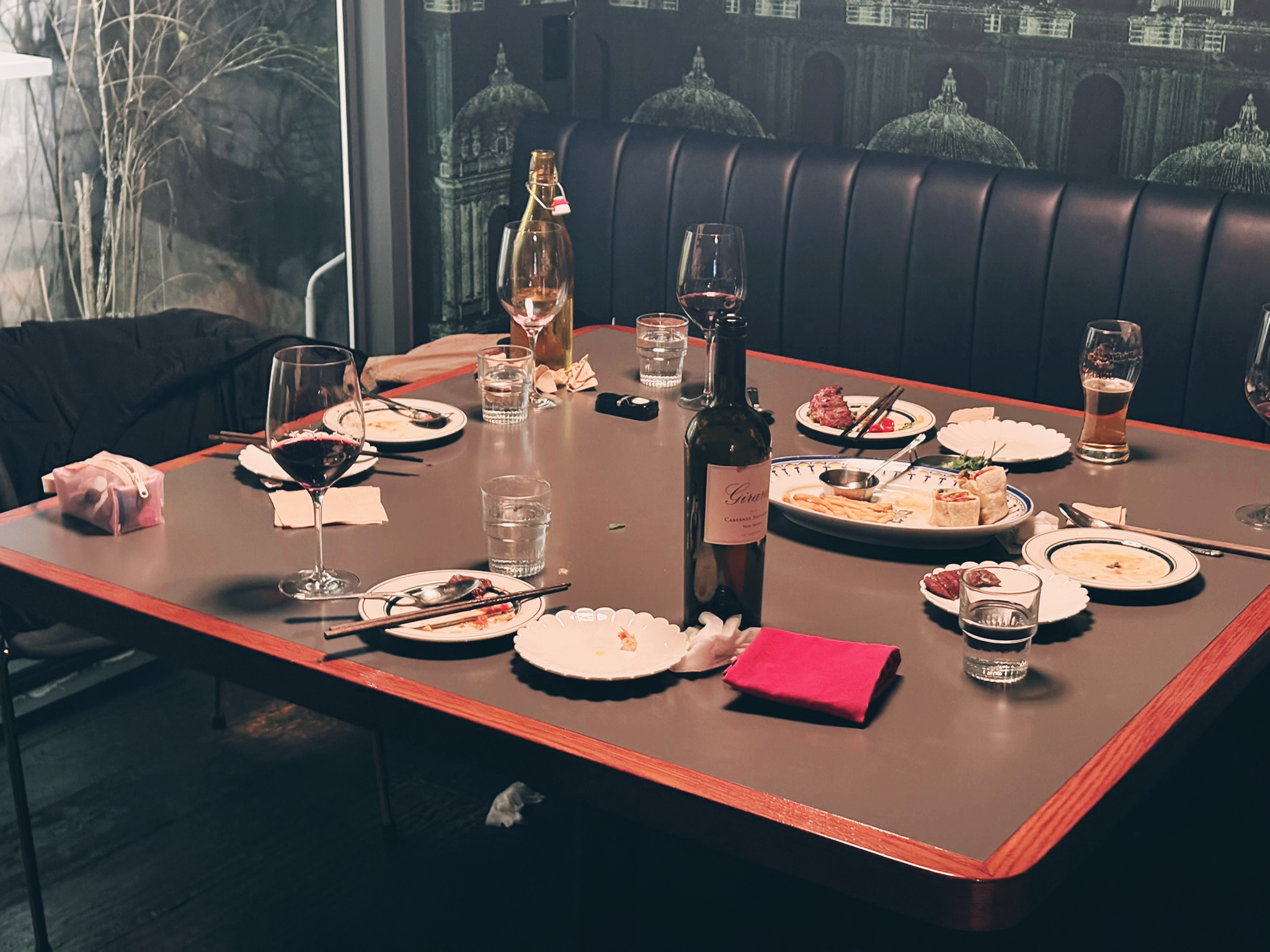 이 날의 술은 나파밸리에서 온 지라드 까베르네쇼비뇽으로. 블랙 베리류와 가죽향이 짙게 나는 나파밸리 와인이었는데 이 날 시킨 메뉴들의 강렬한 향에도 밀리지 않아서 궁합이 좋았다.