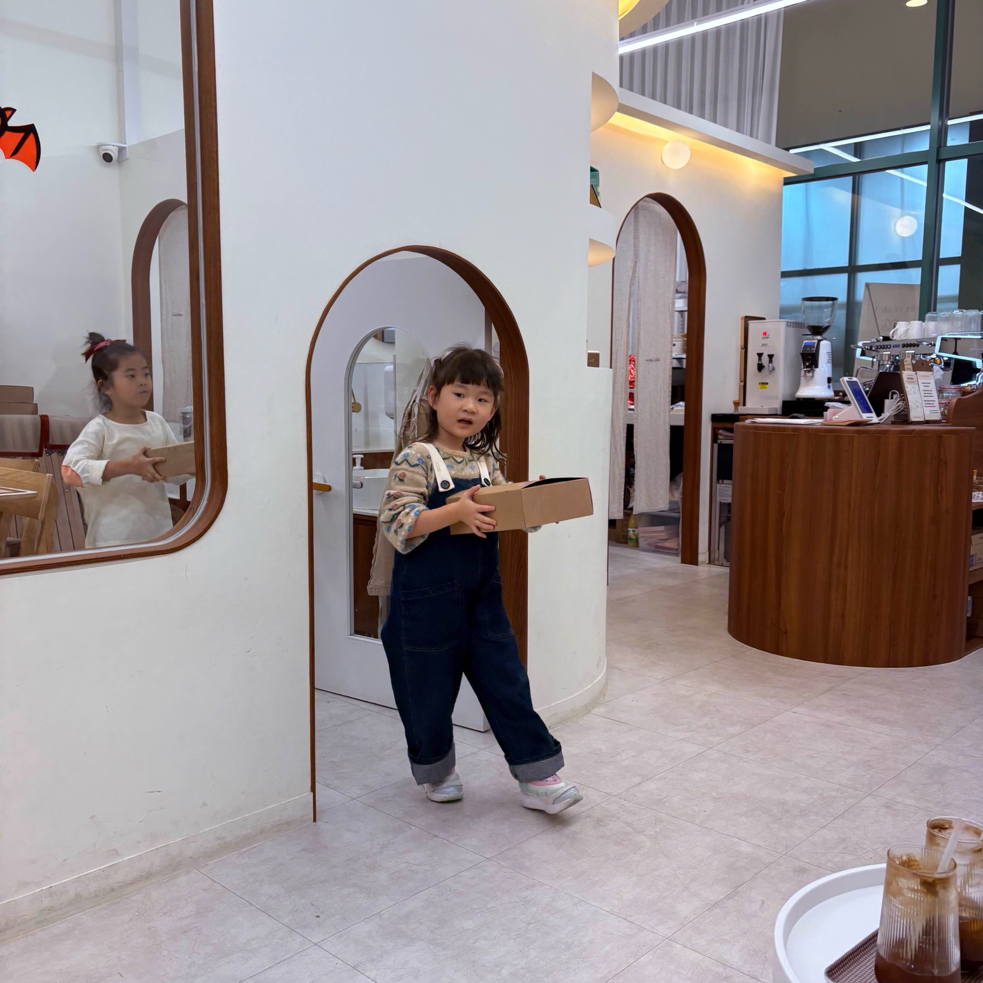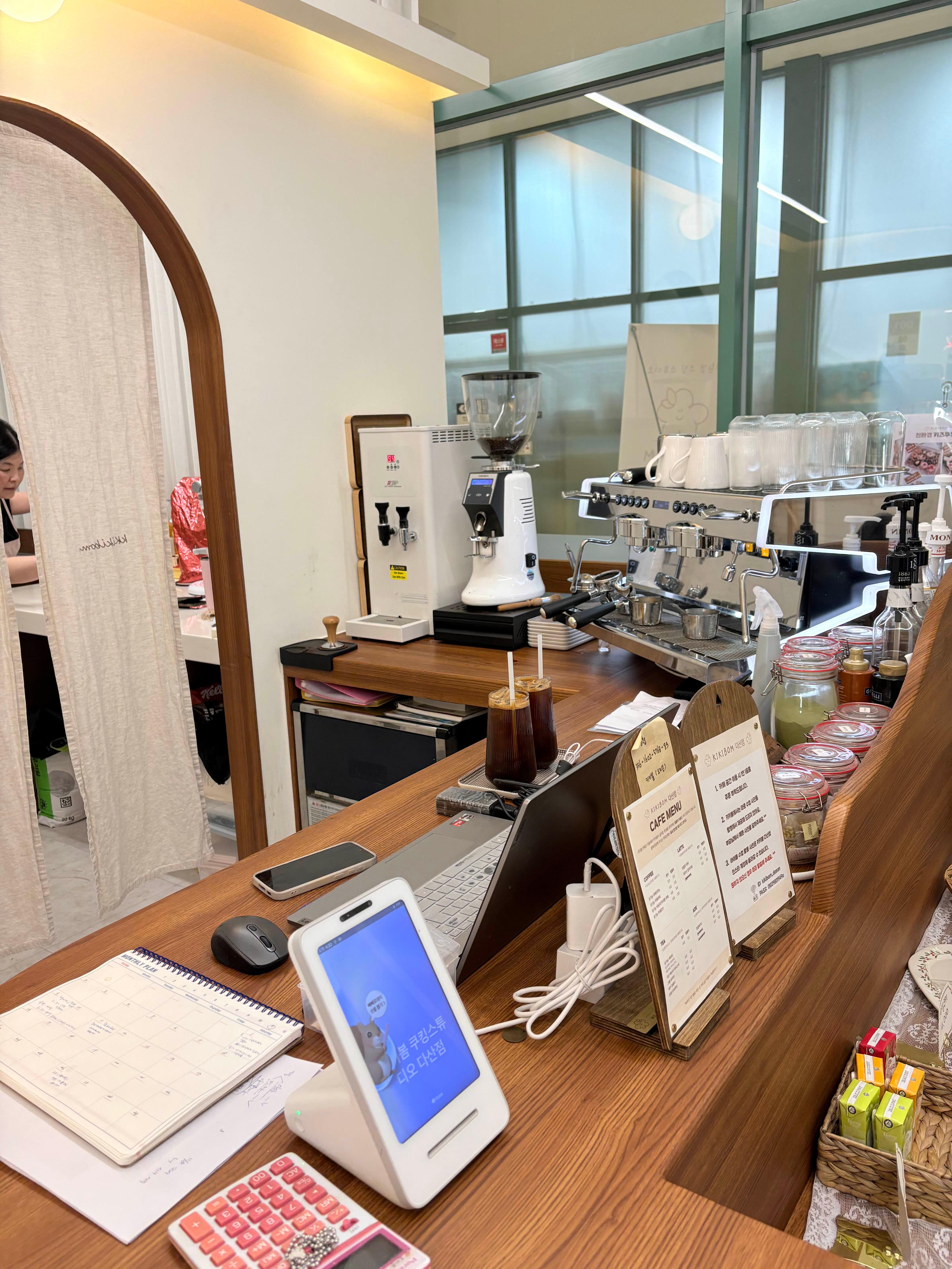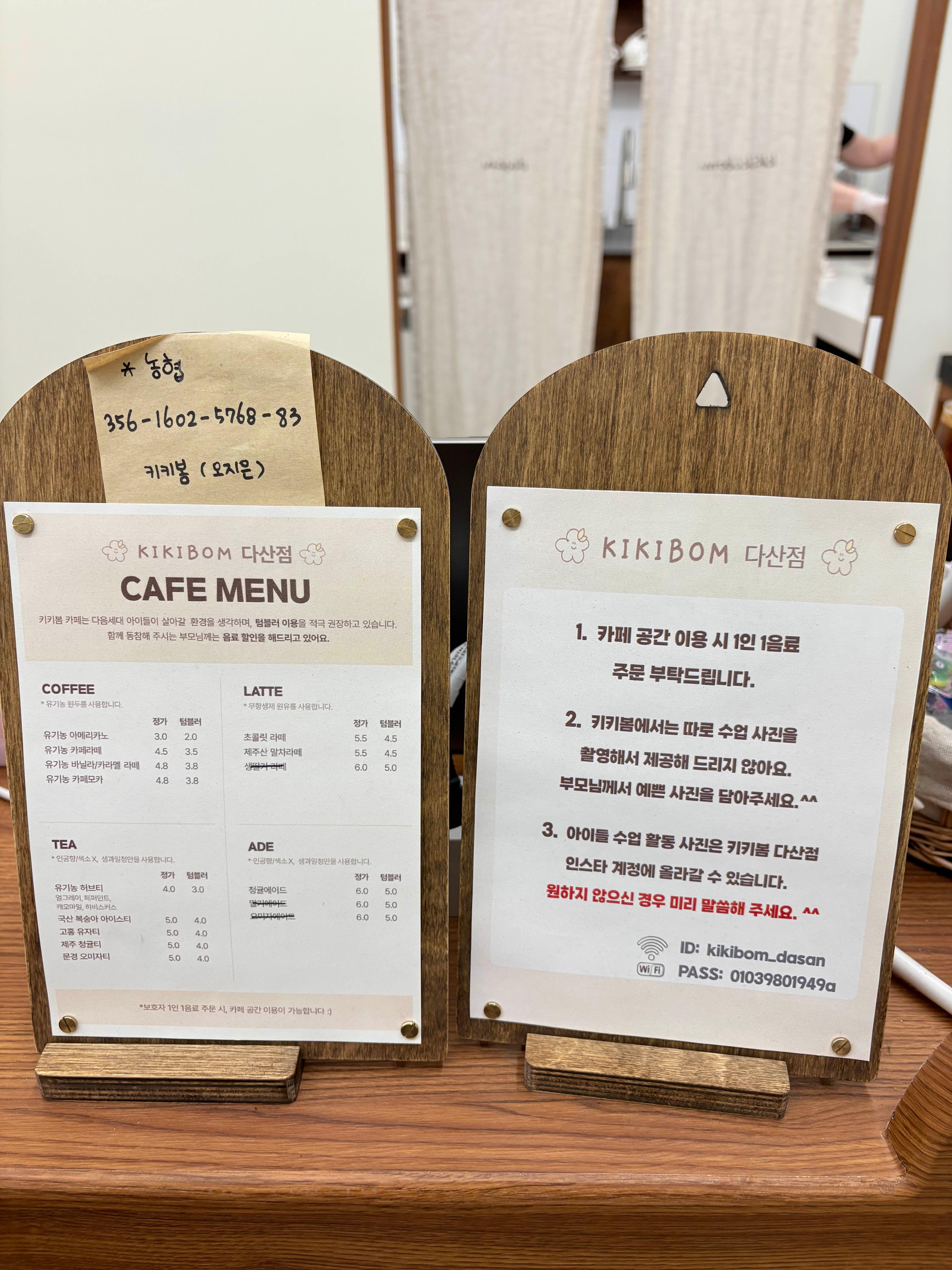 스튜디오 카운터에서 예약한 이름을 말하고 잠시 대기한다. 커피를 주문할 수 있길래 기다리는 동안 마시려고 했는데 수업 시작하면 선생님 두 분 모두 아이들과 계시기 때문에 주문이 어렵다. 하하. 미리가서 커피 주문하고 여유롭게 기다리는게 여러모로 좋다.