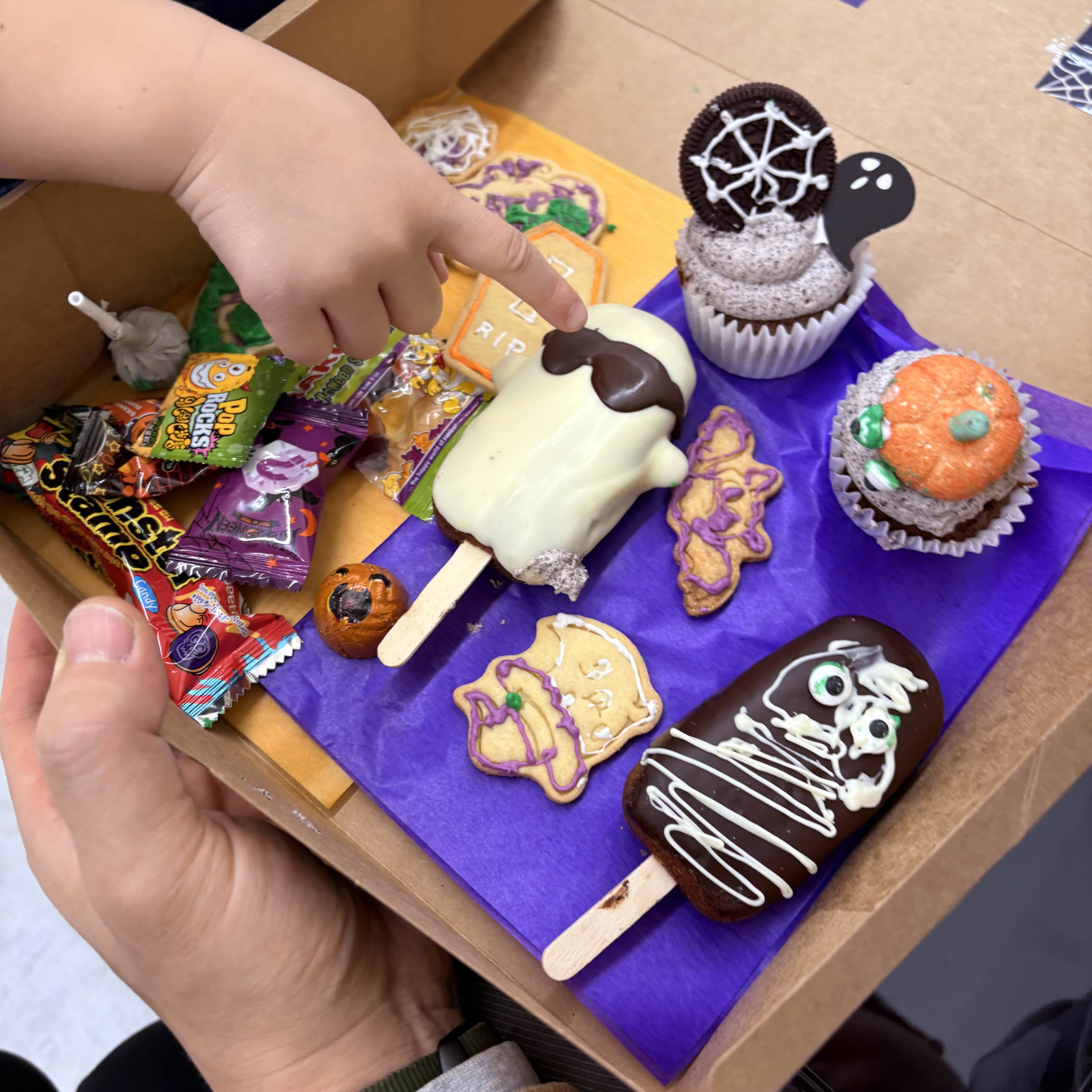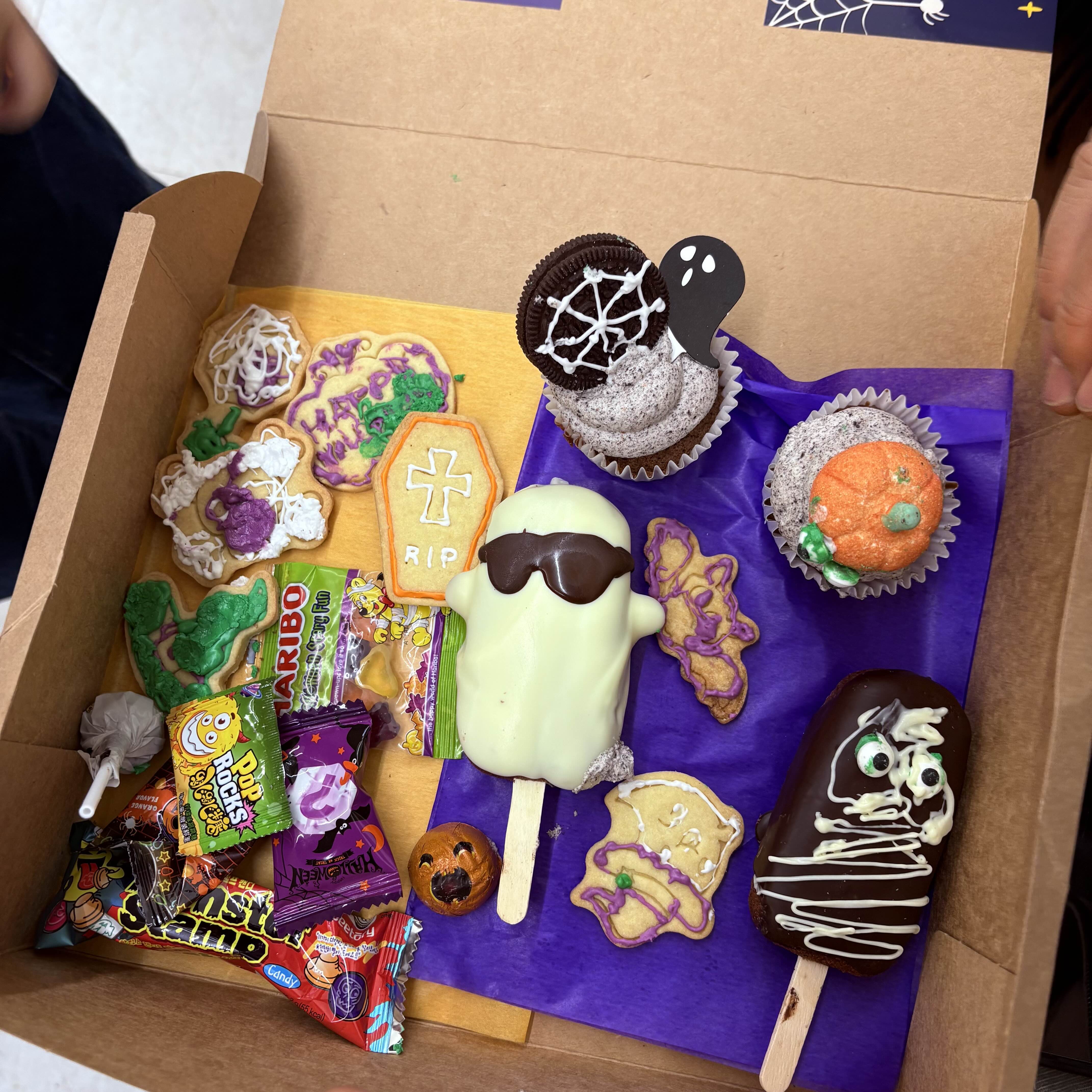 오늘 만든 디저트 박스. 크라프트 박스안에 아이들이 직접 만들고 꾸민 디저트들과 할로윈 사탕들을 예쁘게 담아주신다. 하나 먹어보니 정말 맛있어서 집에 가져와 내가 커피타임할 때도 먹고 베푸 간식으로도 주고 일주일동안 방앗간처럼 잘 먹었다.